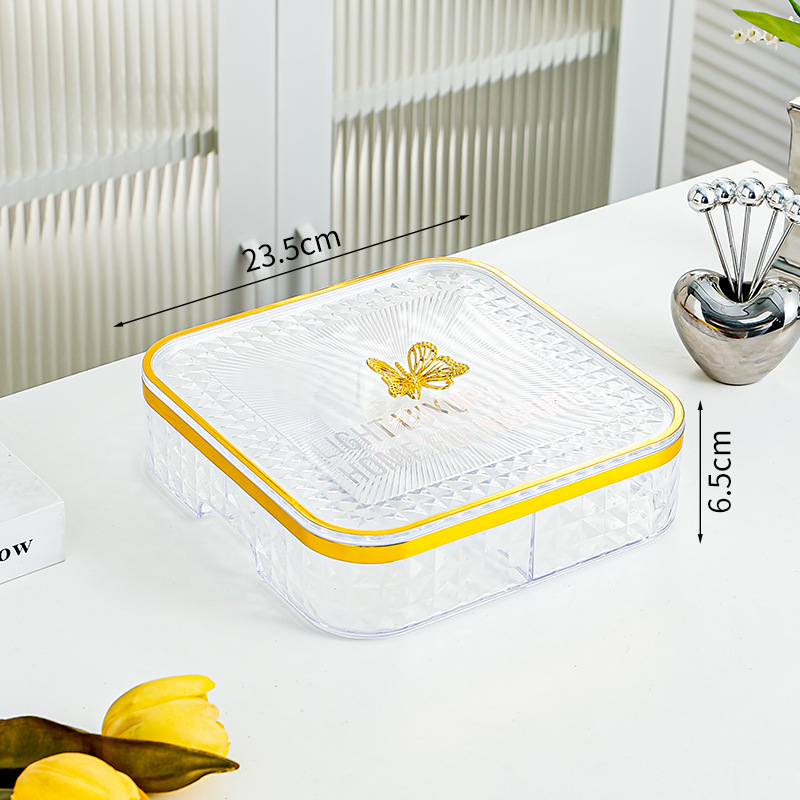 • 투명 사각 다이아몬드 + LH 골드 엣지 더블 레이어 나비 과일 접시
