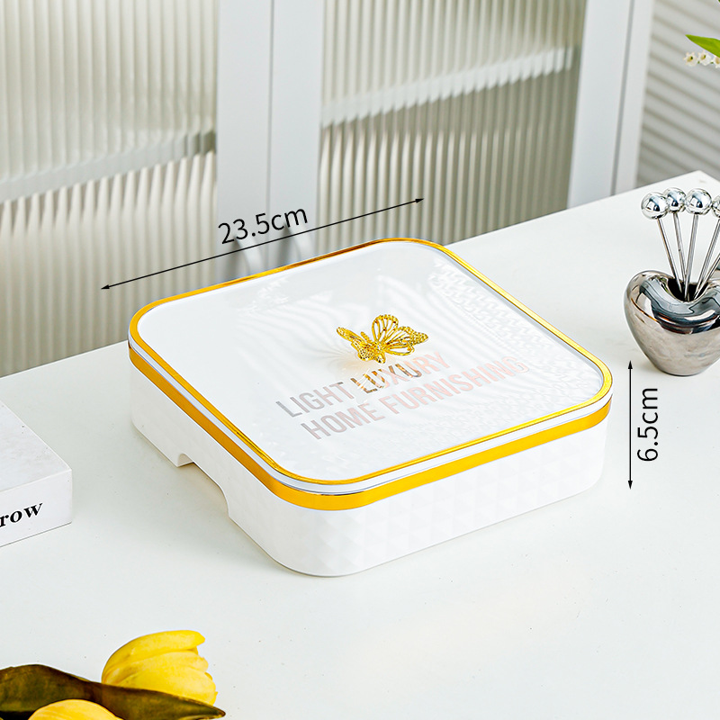 • 솔리드 화이트 스퀘어 다이아몬드 + LH 골드 엣지 단일 레이어 나비 과일 접시