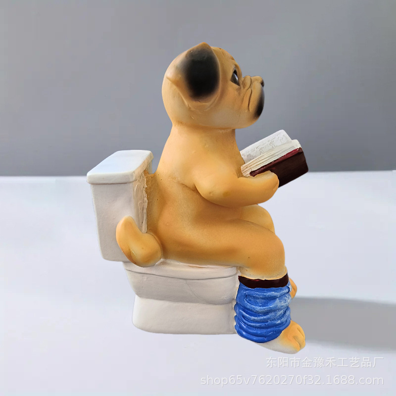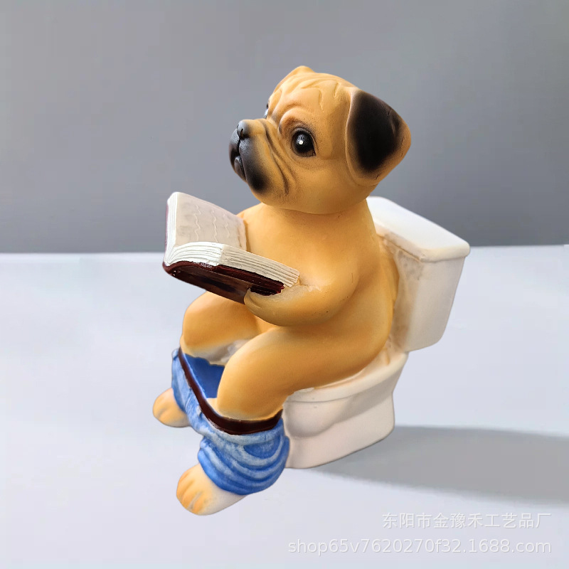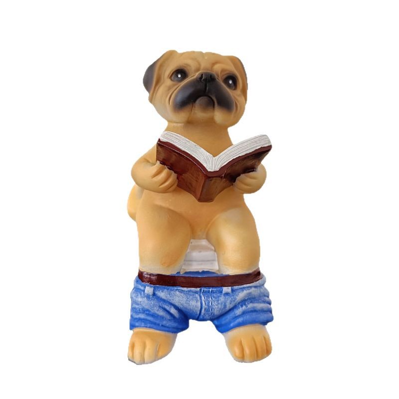 창조적 인 퍼그 변기 독서 책 재미있는 수지 장식 및 독특한 가정 선물스토어 가기