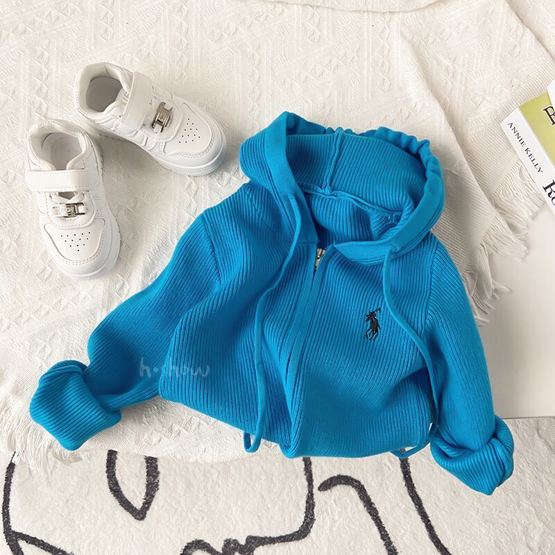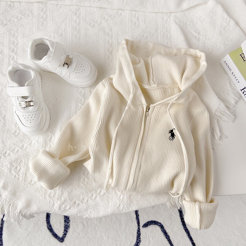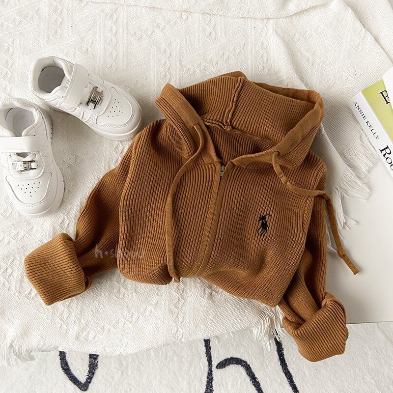 [재고] 한국 어린이 스웨터 봄 새 소년 소녀 단색 후드 니트 아기 단색 자수 카디건