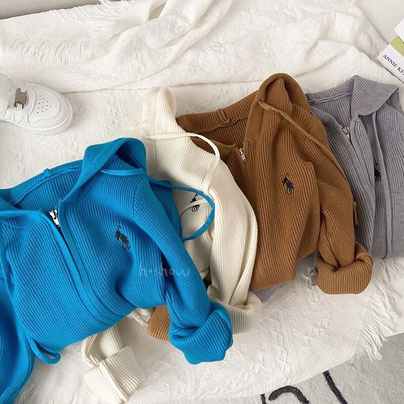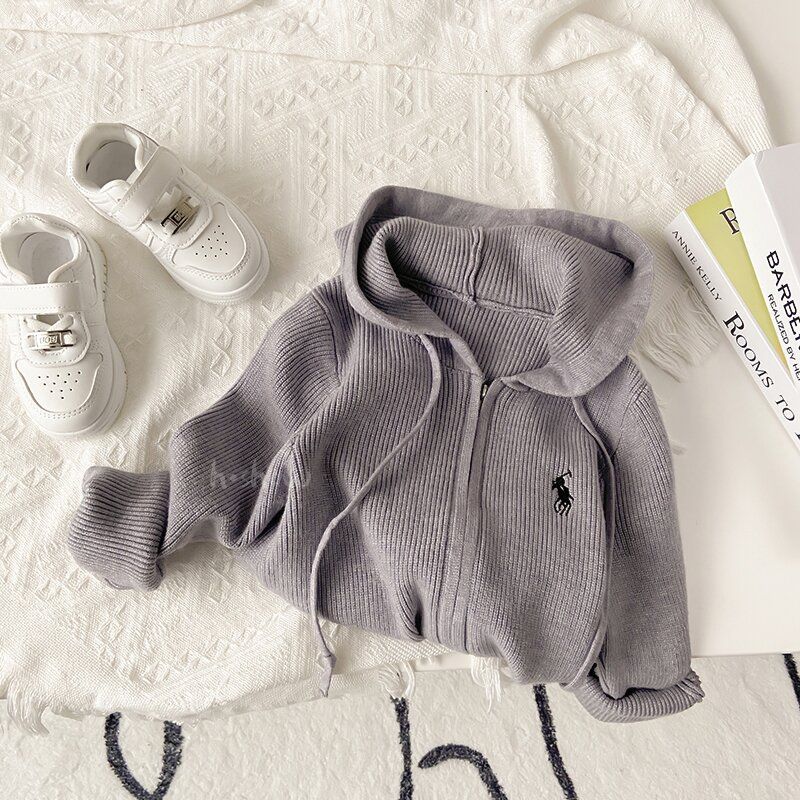 [재고] 한국 어린이 스웨터 봄 새 소년 소녀 단색 후드 니트 아기 단색 자수 카디건스토어 가기