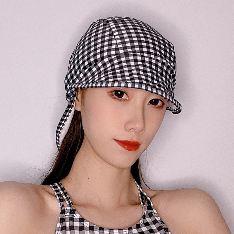 2021 년 새로운 성인 수영 모자 인쇄 귀 보호 플러스 사이즈 머리 귀여운 격자 무늬 패션 여신 태양 모자 도매