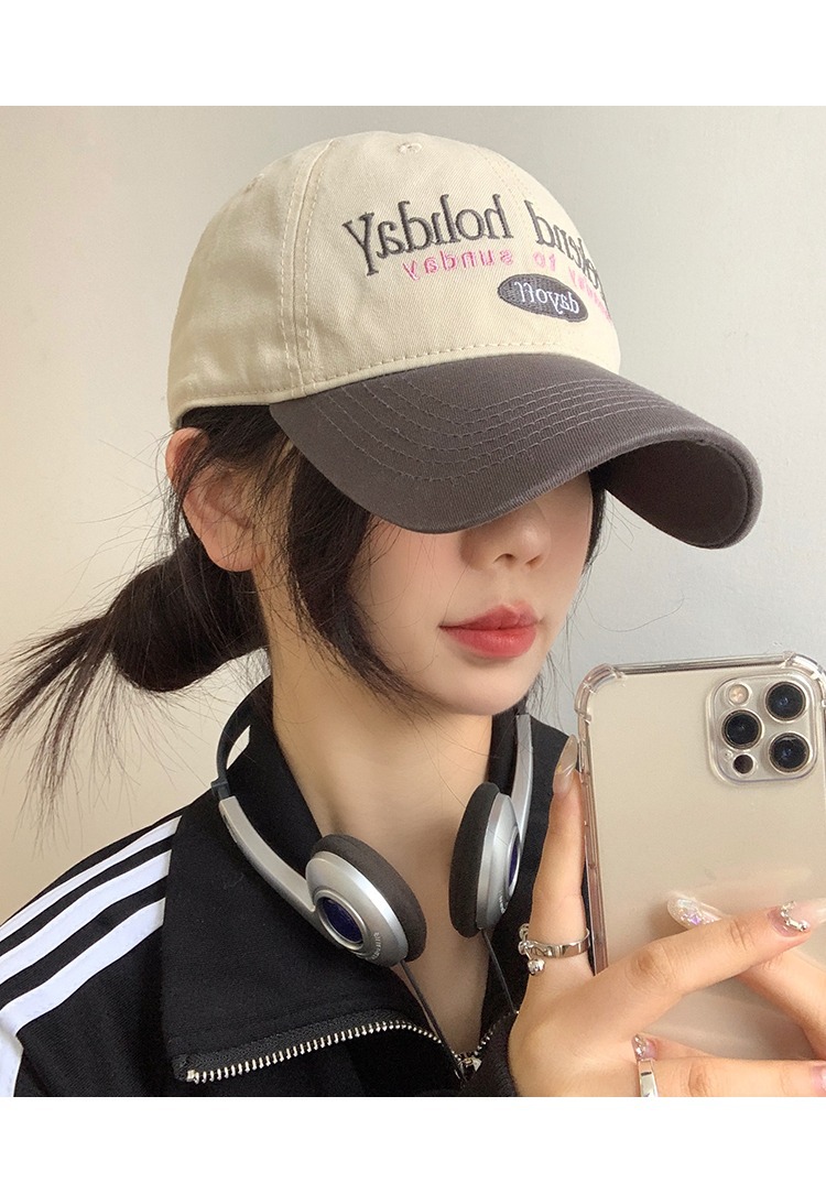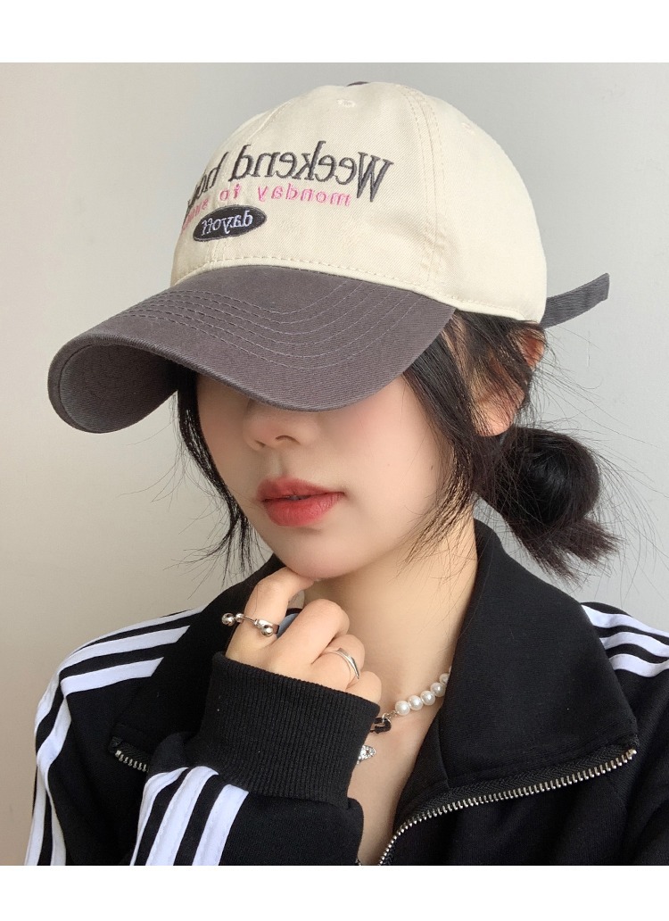 한국 야구 모자 여성용 얼굴 작아보이는 레트로 배색 챙넓은 모자 일본 스타일 조절 가능한 큰 머리둘레스토어 가기