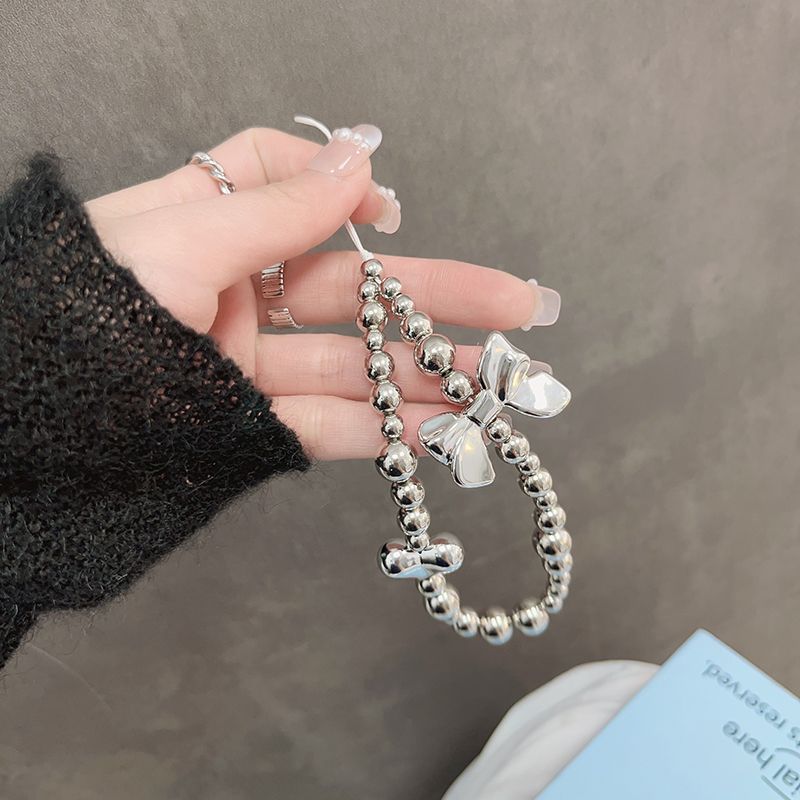 인터넷 인기있는 Ins 여성 실버 구슬 끈 펜던트 휴대 전화 케이스 교수형 체인 DIY 수제 활 가방 체인