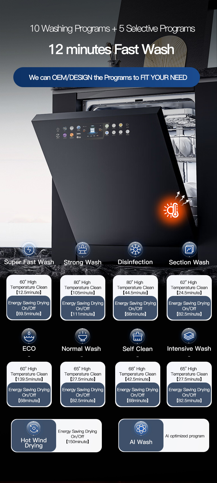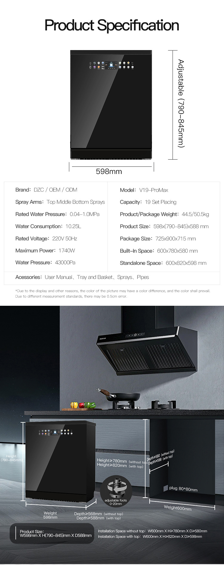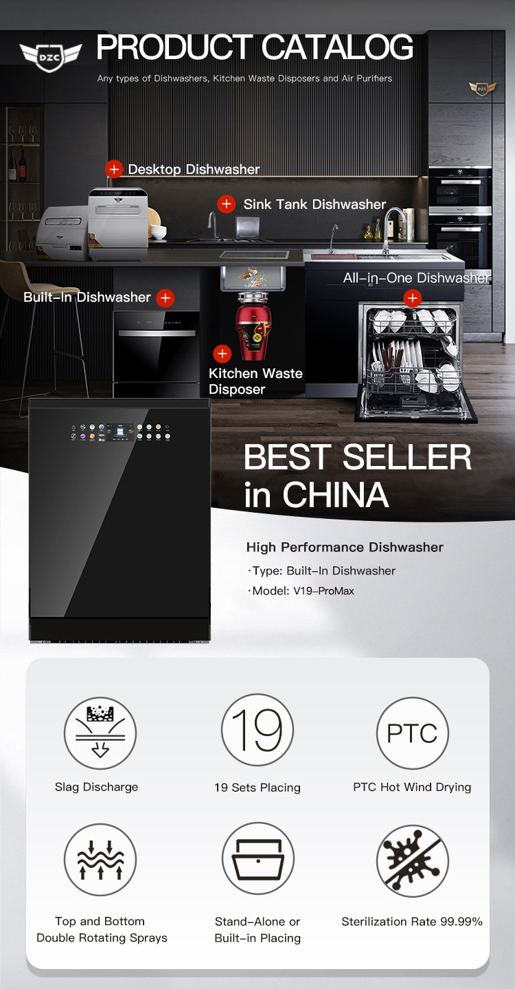 고품질 19세트 자동 다기능 내장형 스마트 편리 주방 매립형 식기세척기 공장 가격