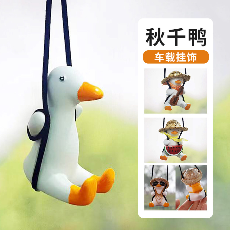 跨境汽车用品车载秋千鸭后视镜挂件批发车内装饰小鸭子汽车挂饰潮