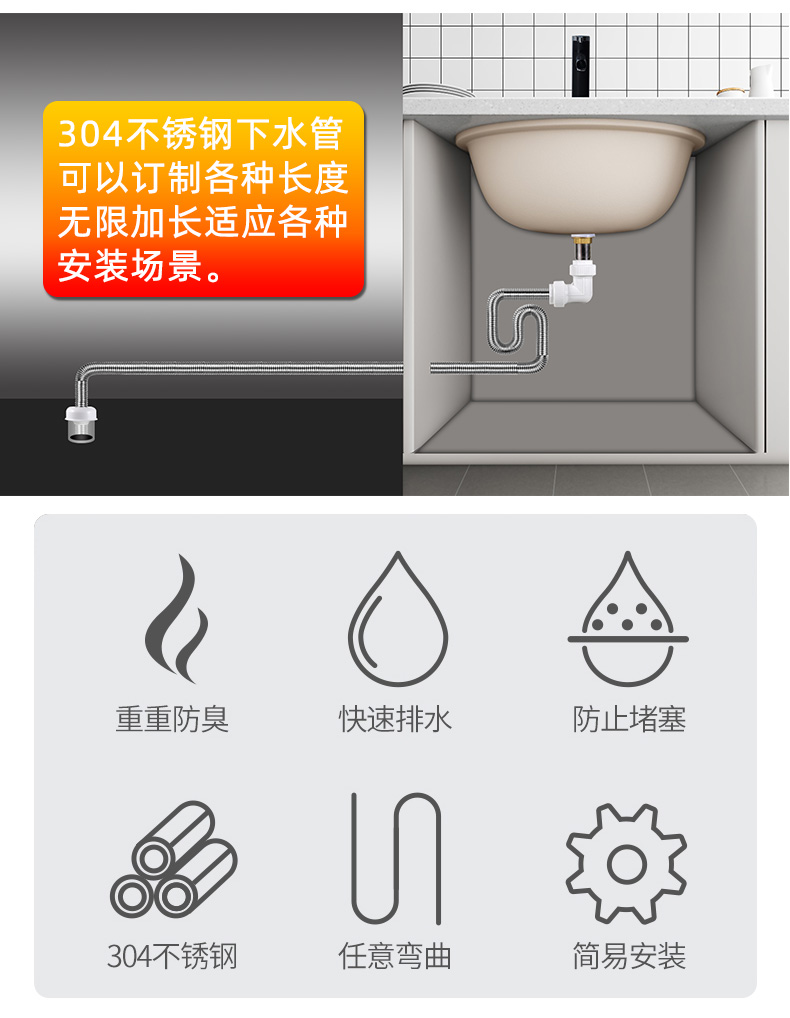 ✅스테인레스 스틸 분지 하수구 연장 탈취제 세면대 이중 분지 배수 부속품은 배수관 높은 저항을 확장합니다스토어 가기