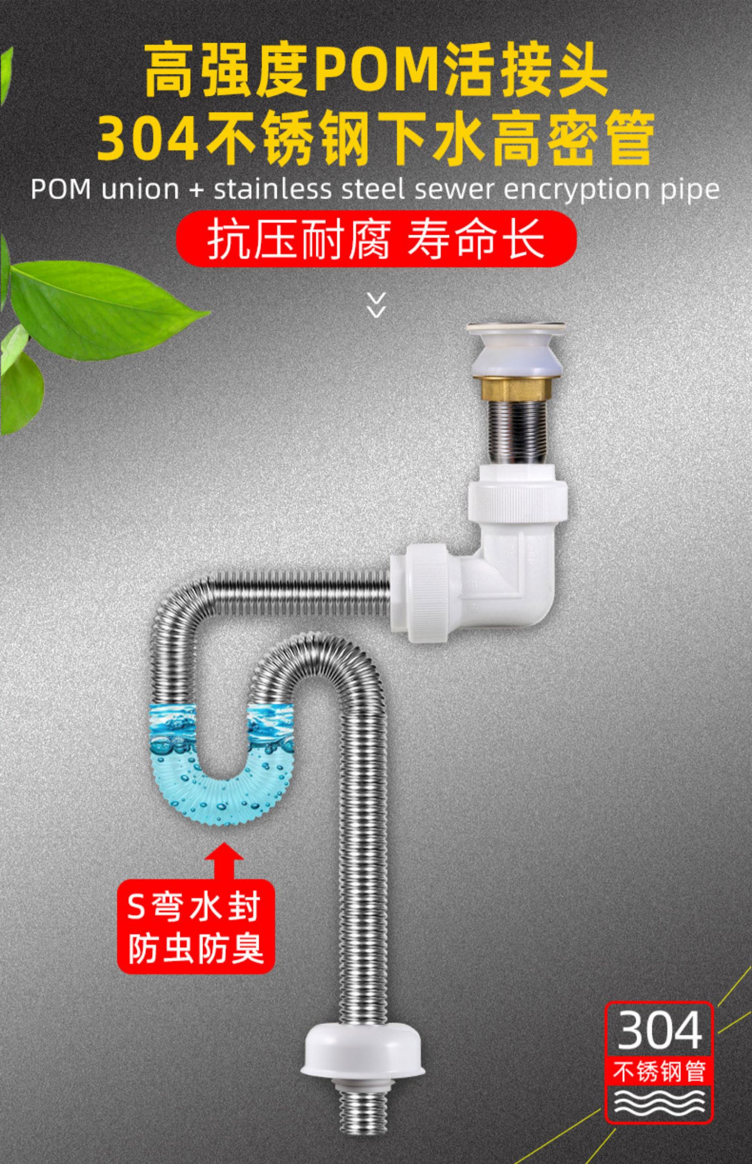 ✅스테인레스 스틸 분지 하수구 연장 탈취제 세면대 이중 분지 배수 부속품은 배수관 높은 저항을 확장합니다