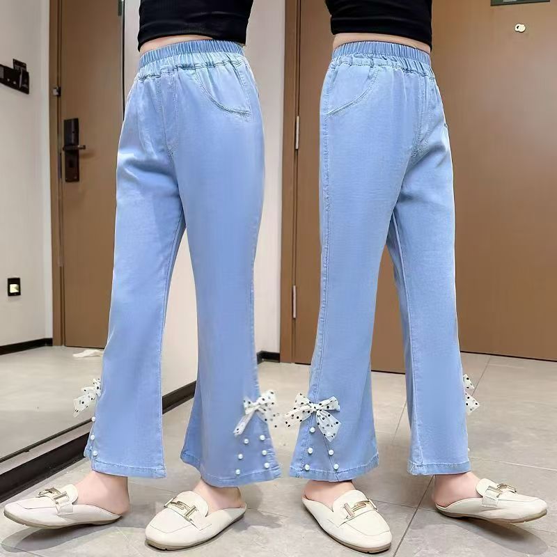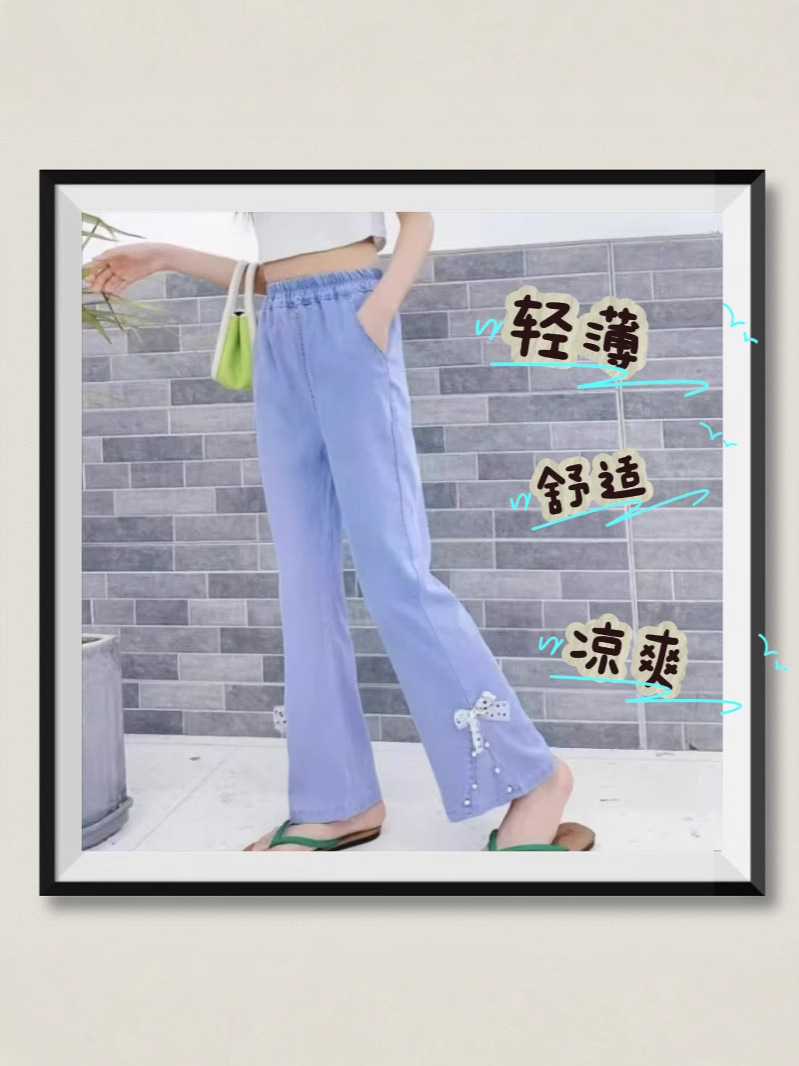 여름 얇은 텐셀 청바지 아이스 실크 걸스 올 매치 하이 탄성 트렌디 플래 팬츠 편안한 서양식 소녀 바지스토어 가기