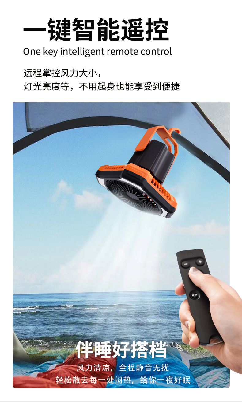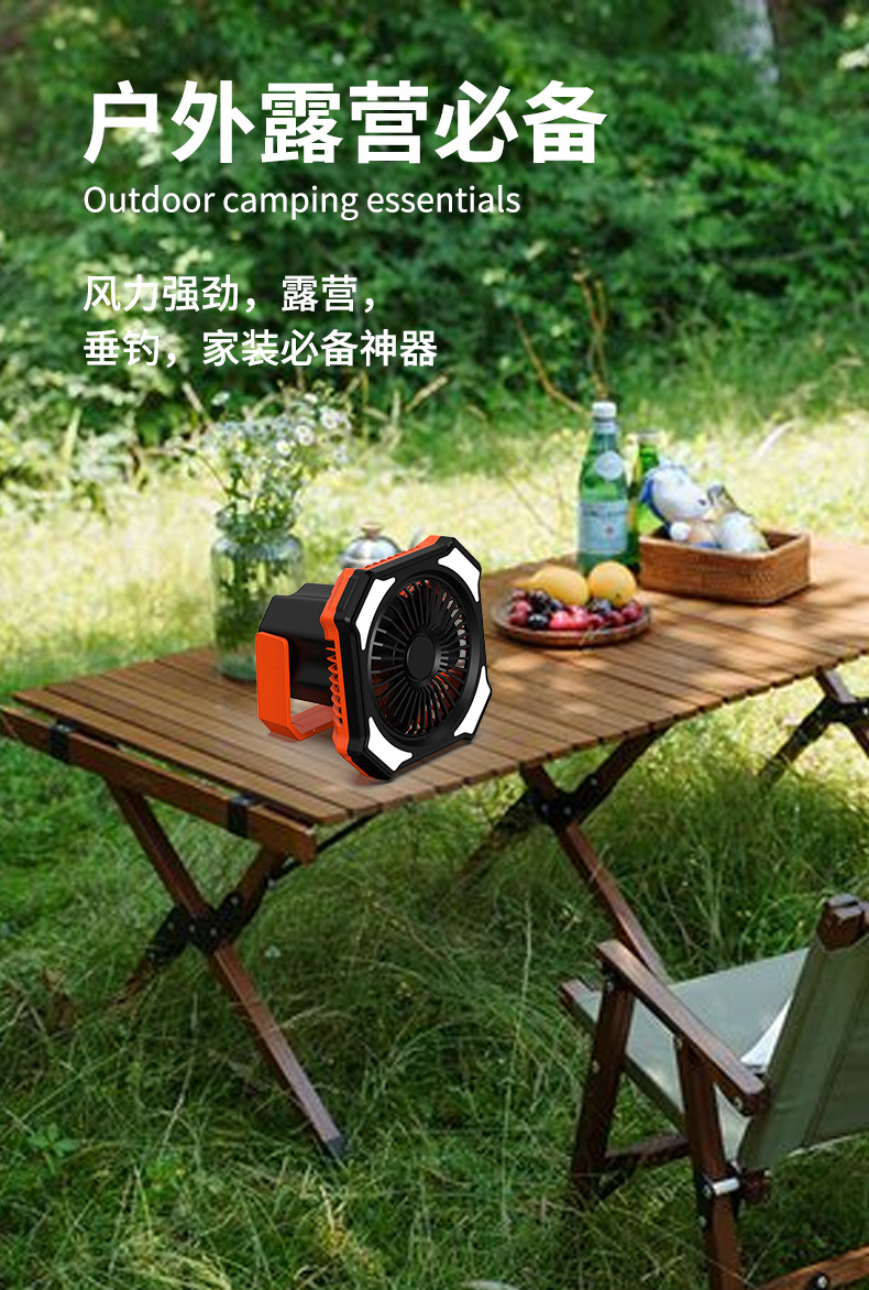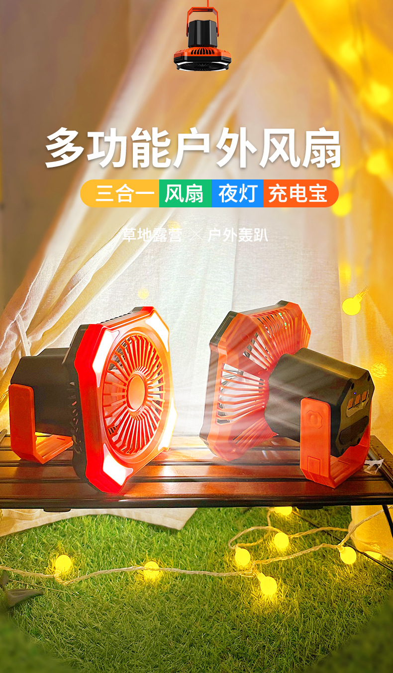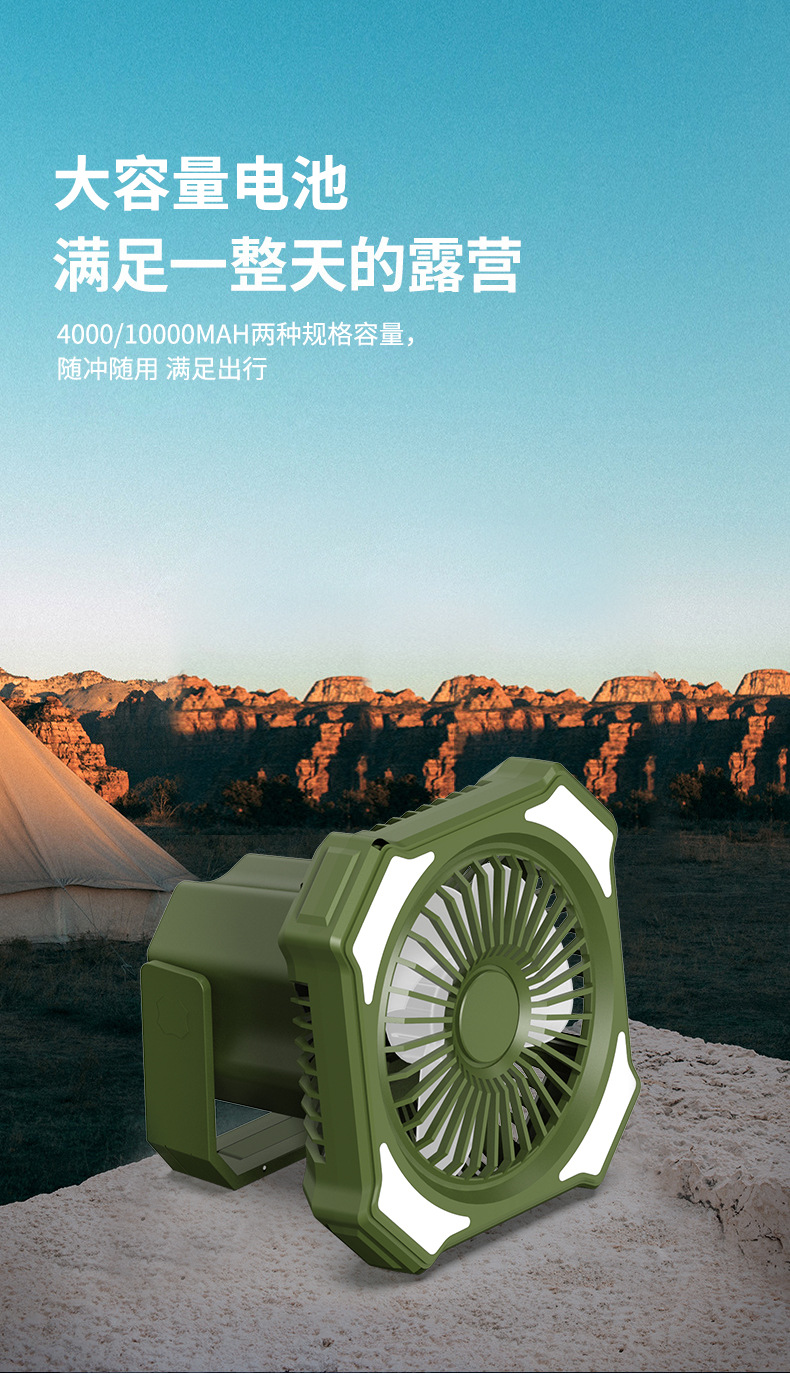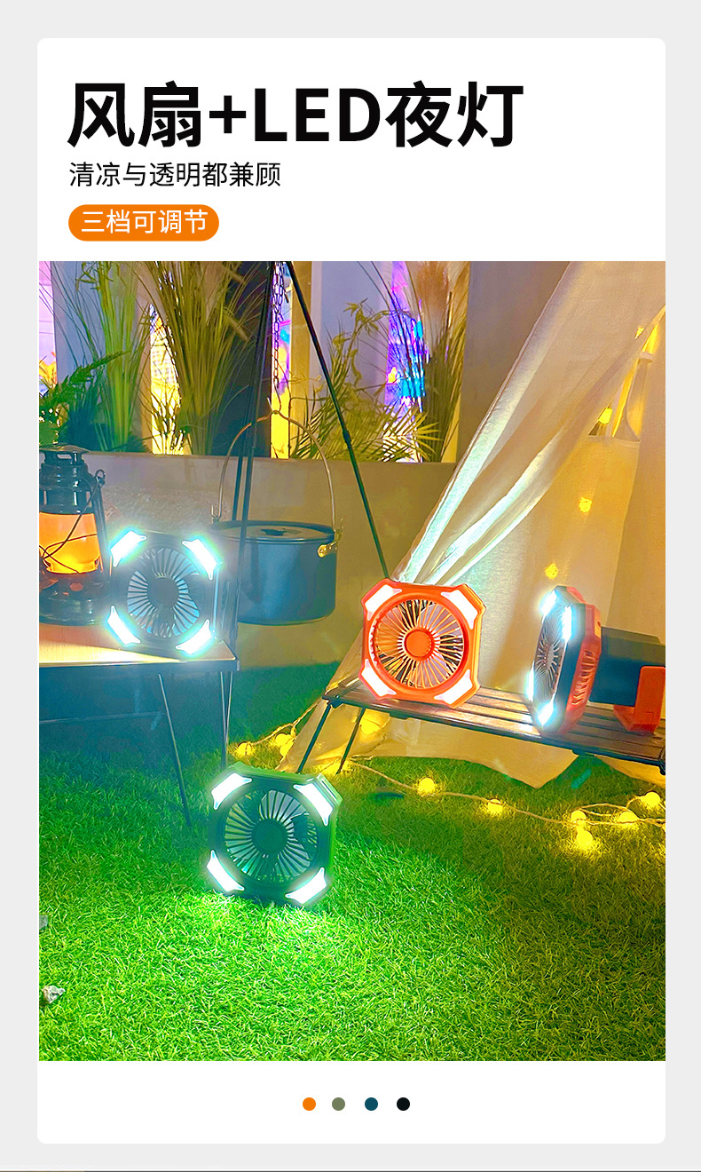 국경 간 새로운 다기능 야외 캠핑 팬 휴대용 USB 전원 은행 LED 조명 팬 홈 텐트 숙박