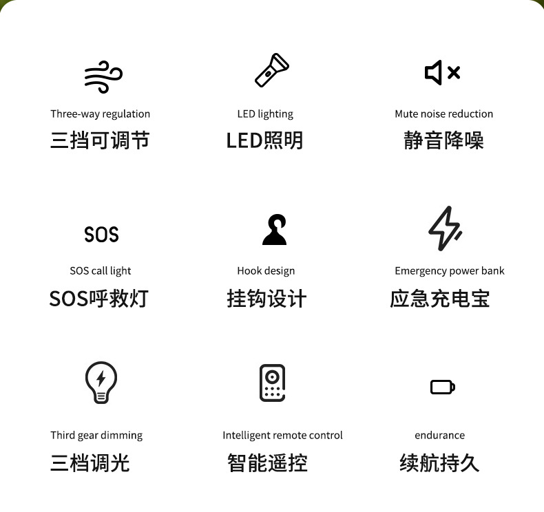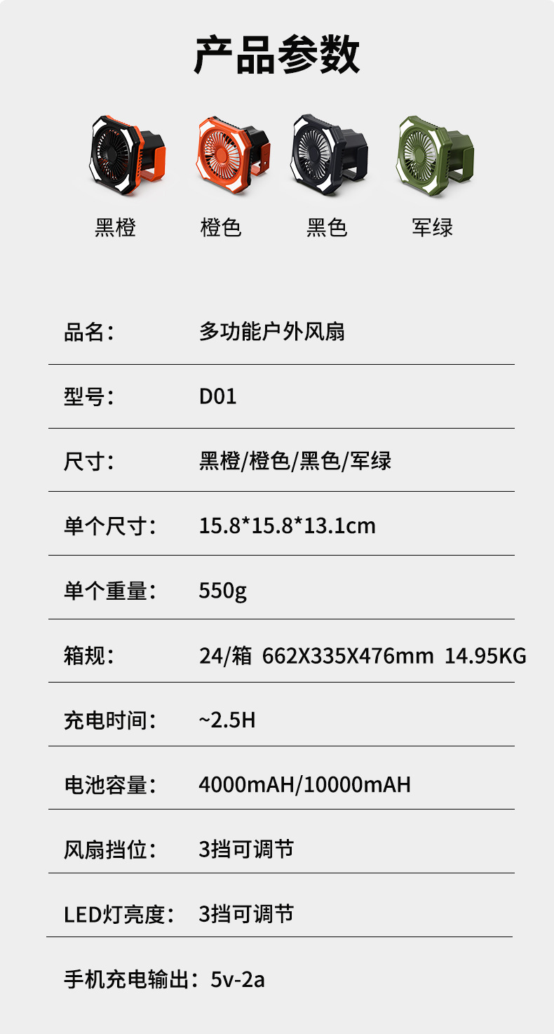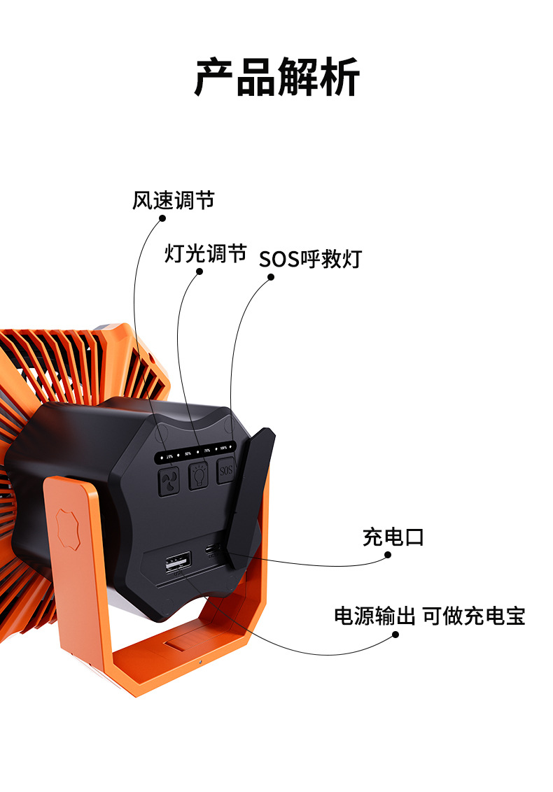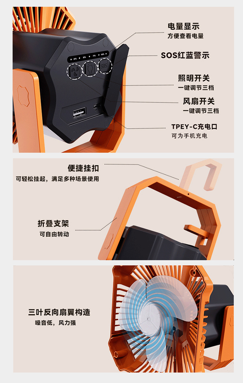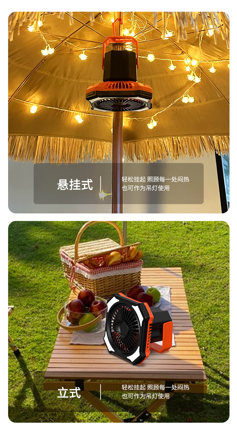 국경 간 새로운 다기능 야외 캠핑 팬 휴대용 USB 전원 은행 LED 조명 팬 홈 텐트 숙박