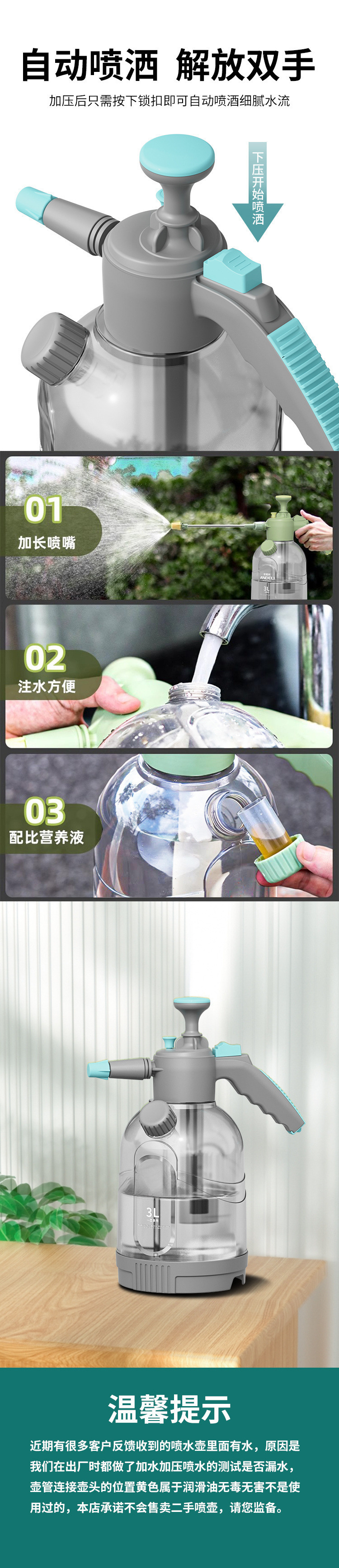 물주전자 3L 고압주전자 투명 공기압 물주전자 수동 대용량 급수 및 원예 특수 새 모델