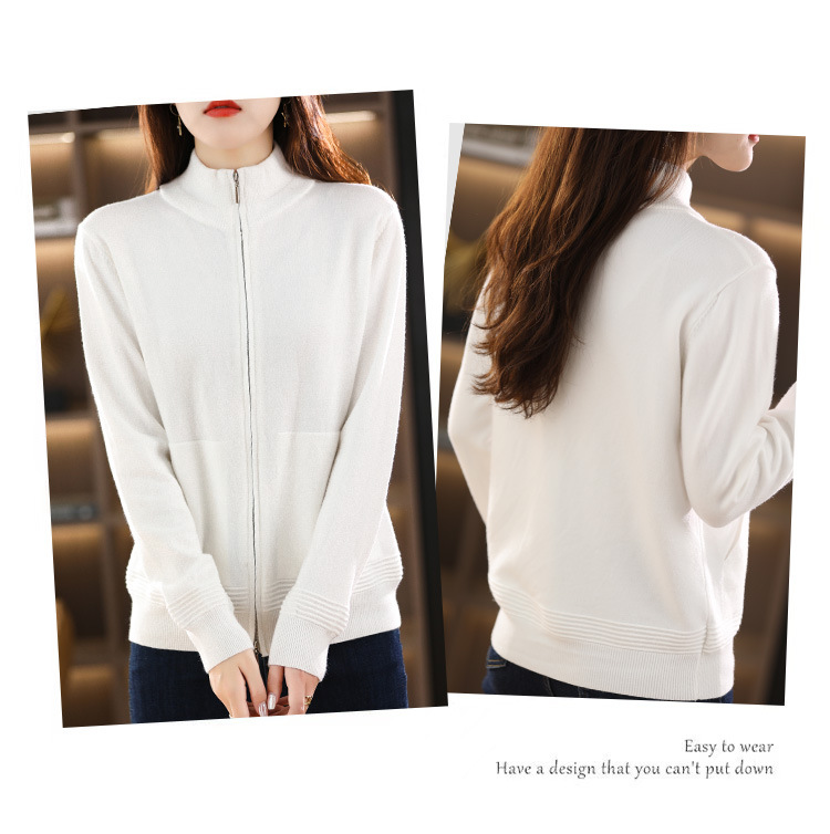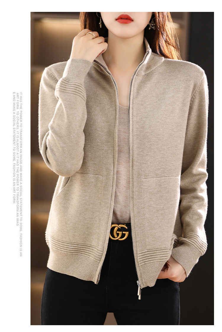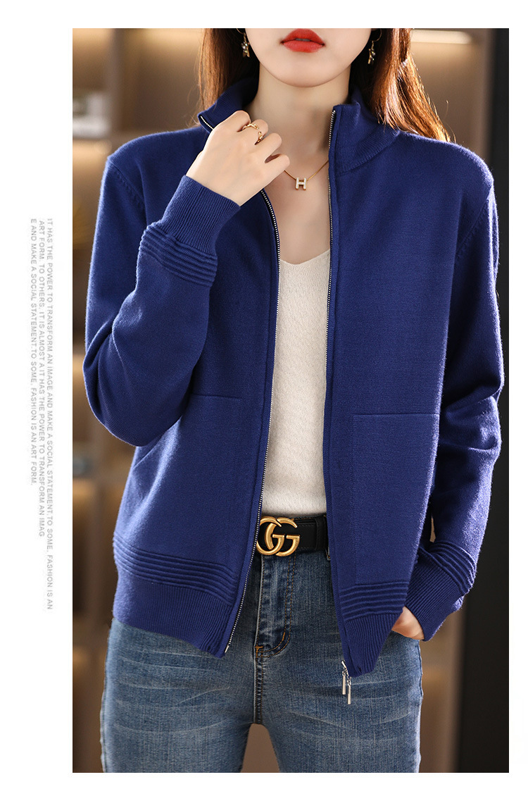 여성용 짧은 지퍼 니트 가디건 루즈 캐주얼 뉴 스탠드 칼라 코트 스웨터 솔리드 컬러 따뜻한 스웨터 탑