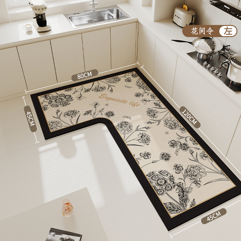 주방 특수 바닥 매트 L자형 미끄럼 방지 규조토 진흙 흡수성 및 방유 바닥 매트 7자형 코너 절단 가능한 카펫스토어 가기