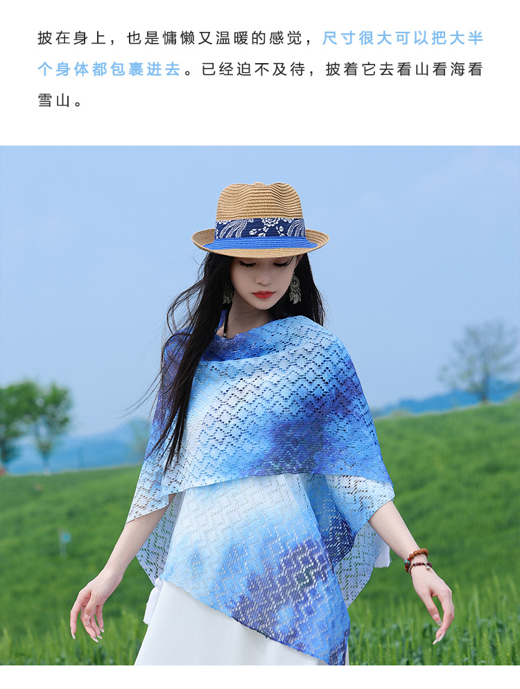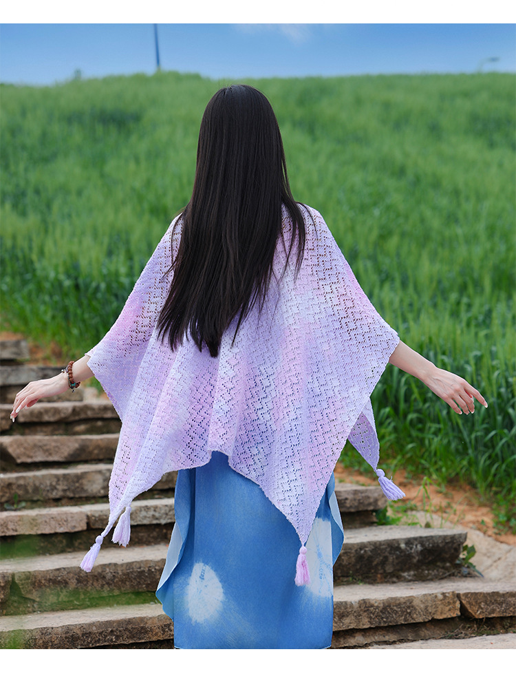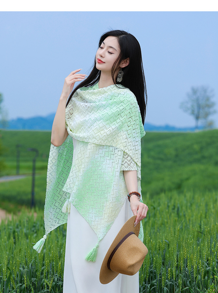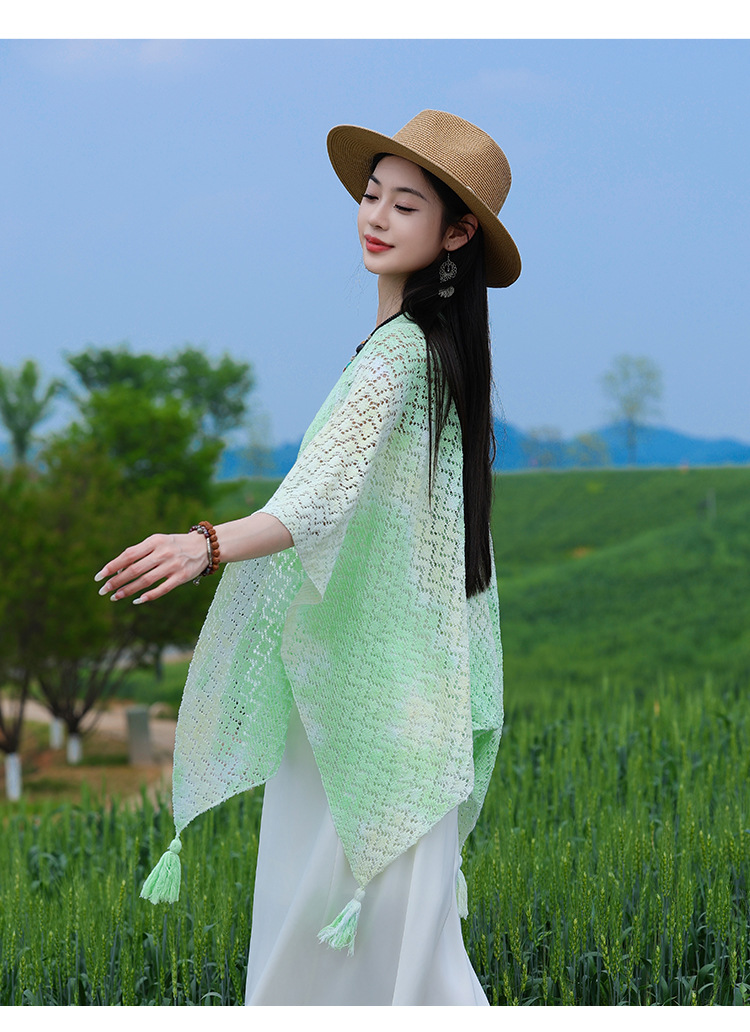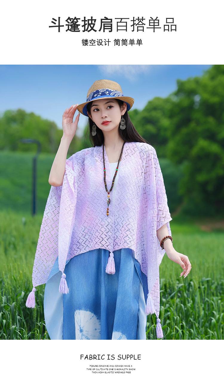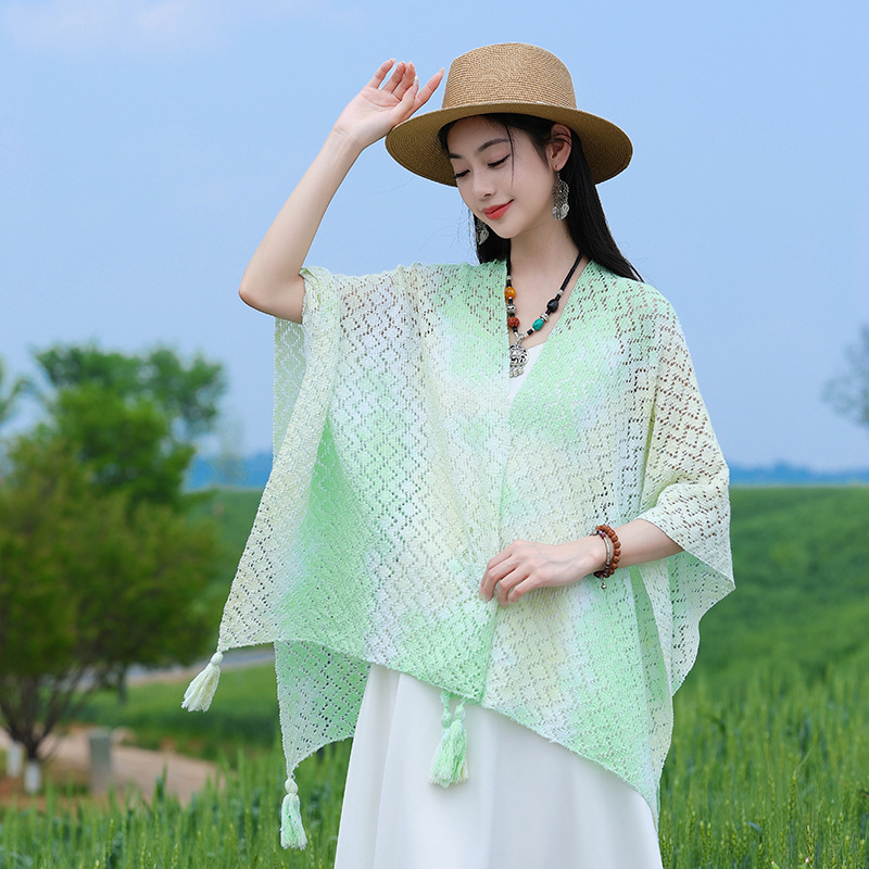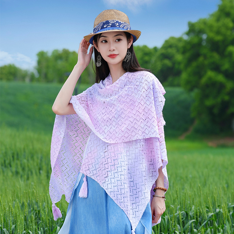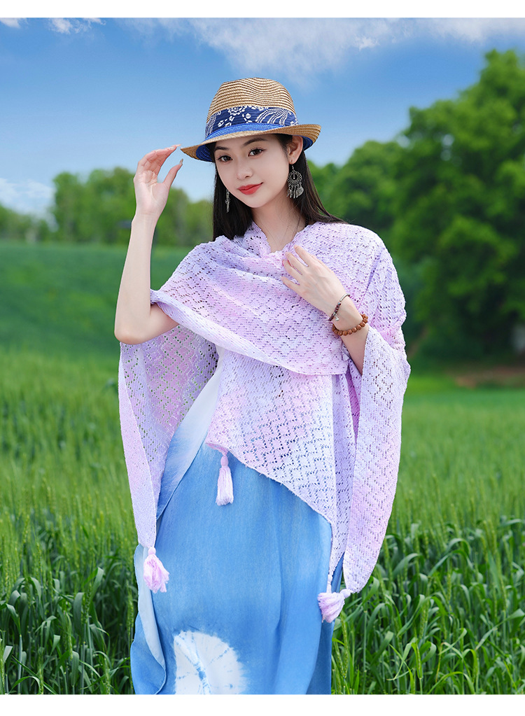 여성을위한 그라디언트 색상 중공 니트 운남 신장 고대 도시 여행 착용 목도리 여름 휴가 양복 조끼 따뜻한 망토