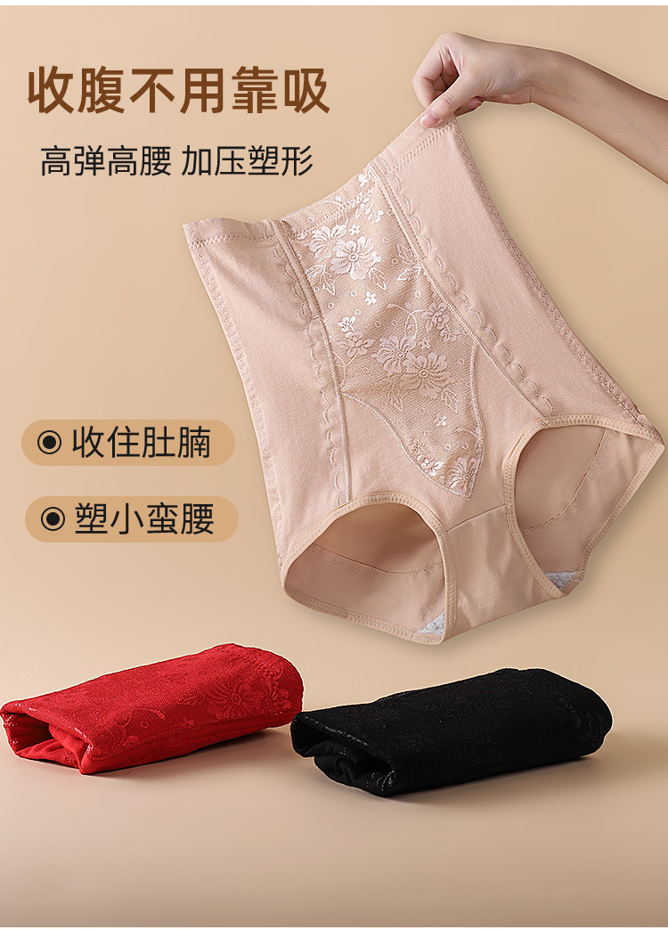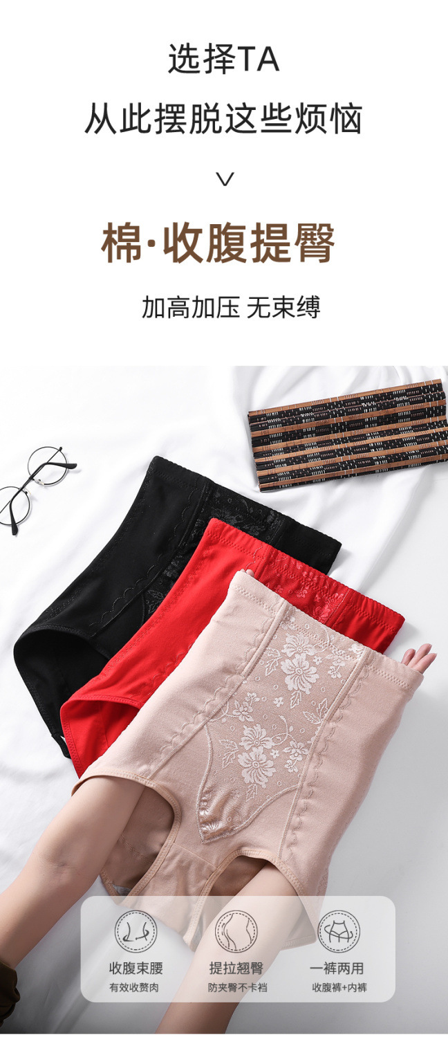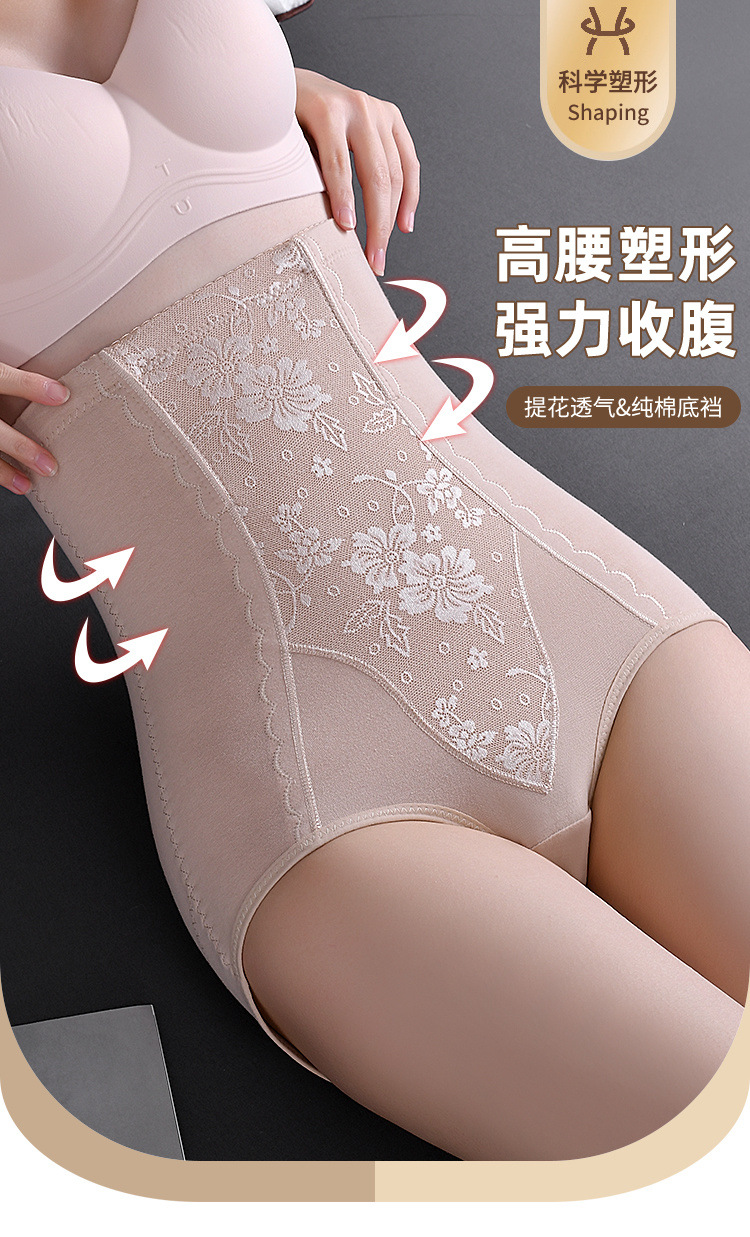 순수한 면화 속옷 여성의 높은 허리 복부 바지 위로 들어 올리는 팔-작은 배 모양 바지 산후 플라스틱 허리 컬링없이 얇은