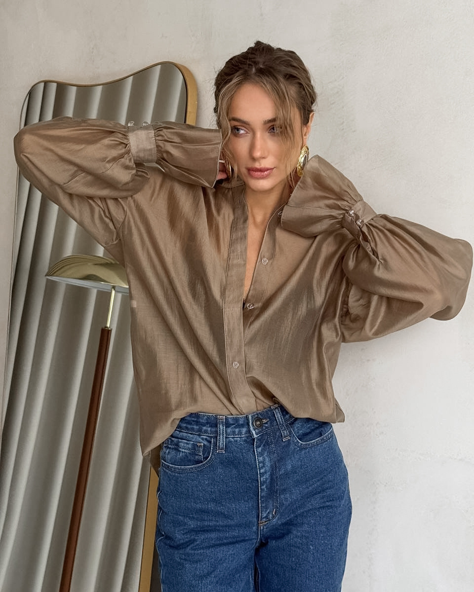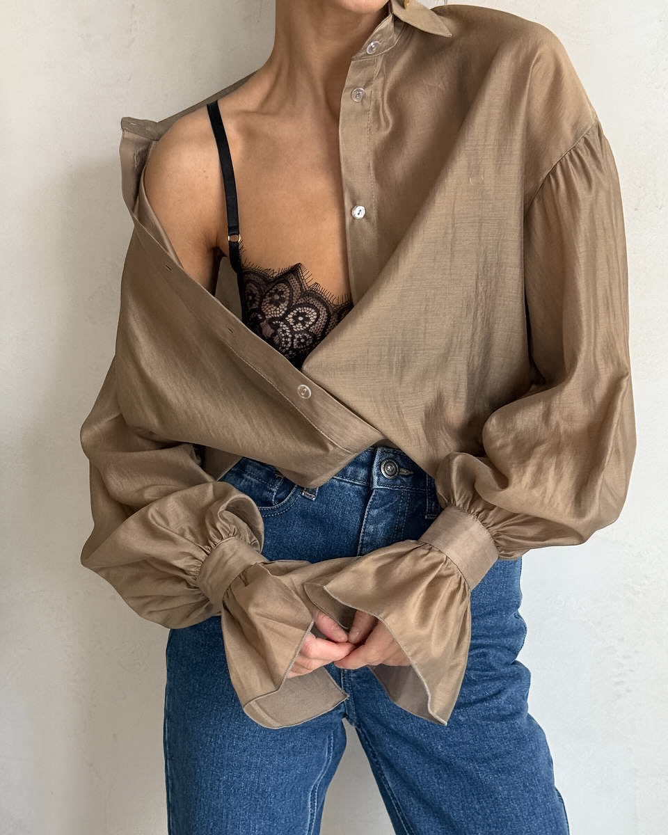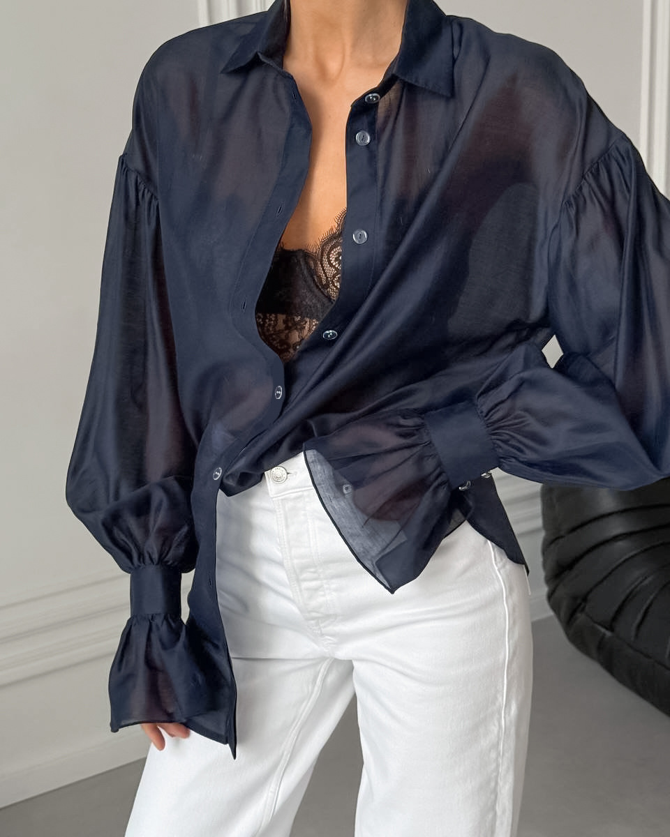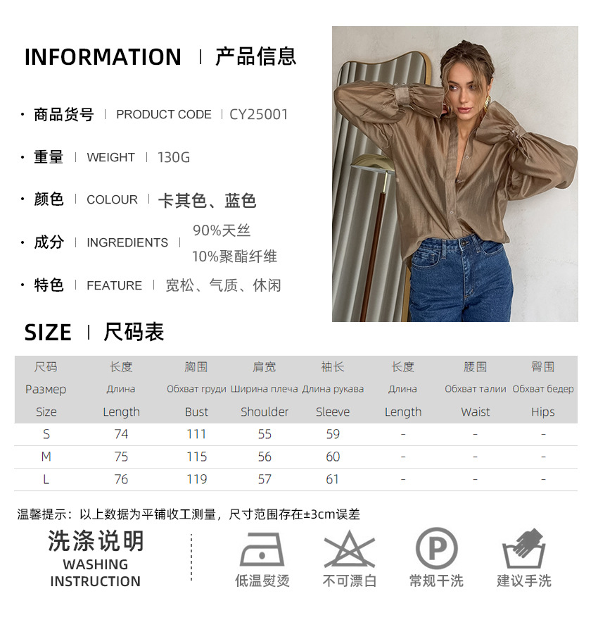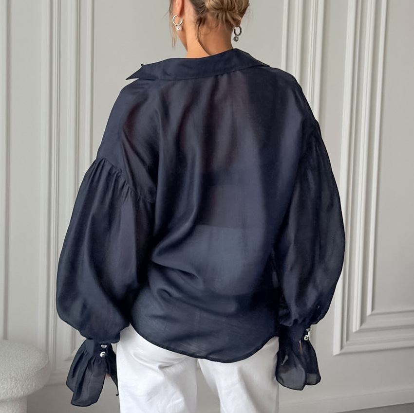 2025 새로운 가을 스타일 여성용 시스루 긴팔 셔츠, 개성 있고 패셔너블하며 캐주얼한 유럽과 미국의 통근 셔츠스토어 가기