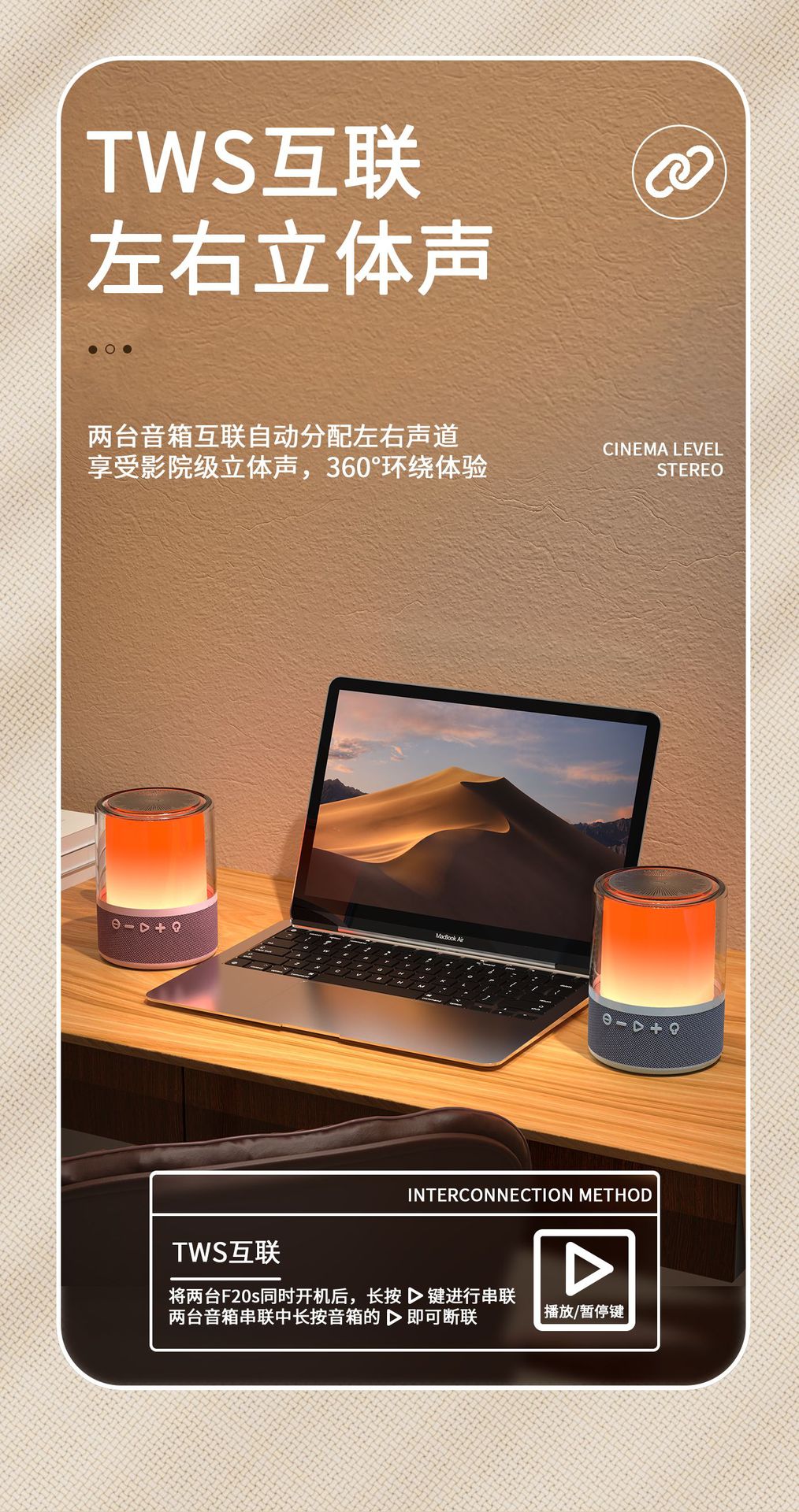 F20s 새로운 분위기 빛 블루투스 스피커 국경 20W 서브 우퍼 데스크톱 서브 우퍼 블루투스 오디오 K-노래 오디오스토어 가기