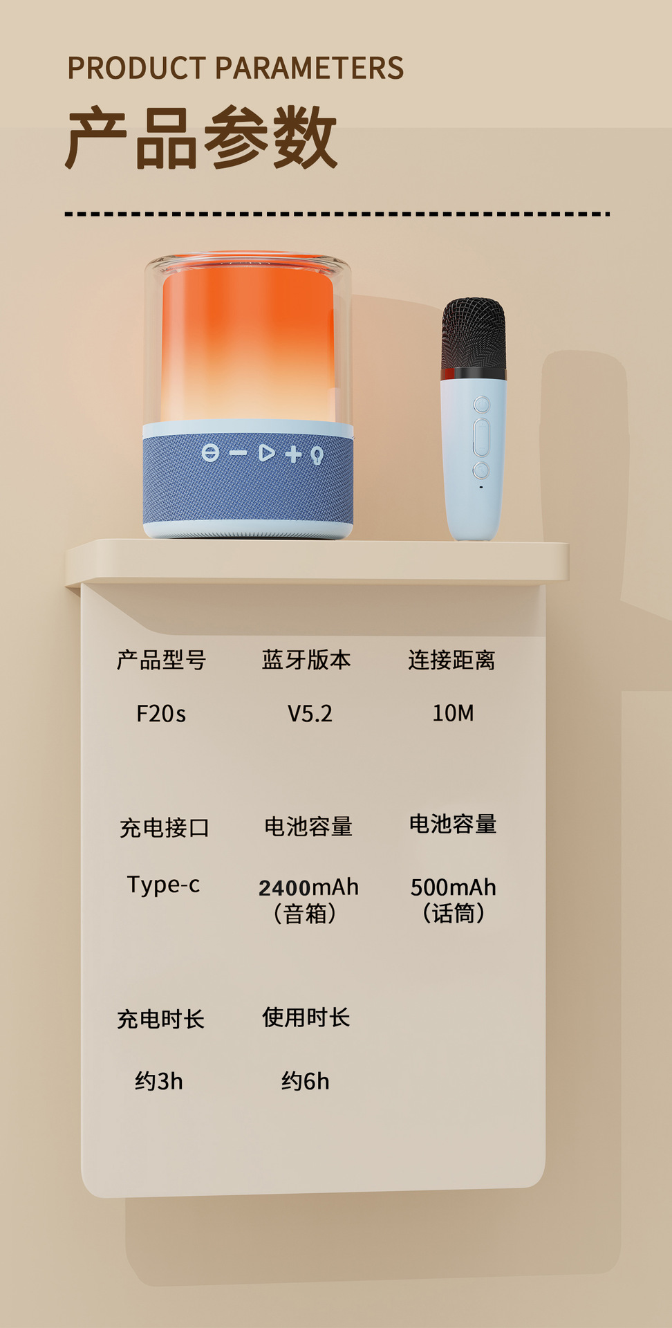 F20s 새로운 분위기 빛 블루투스 스피커 국경 20W 서브 우퍼 데스크톱 서브 우퍼 블루투스 오디오 K-노래 오디오