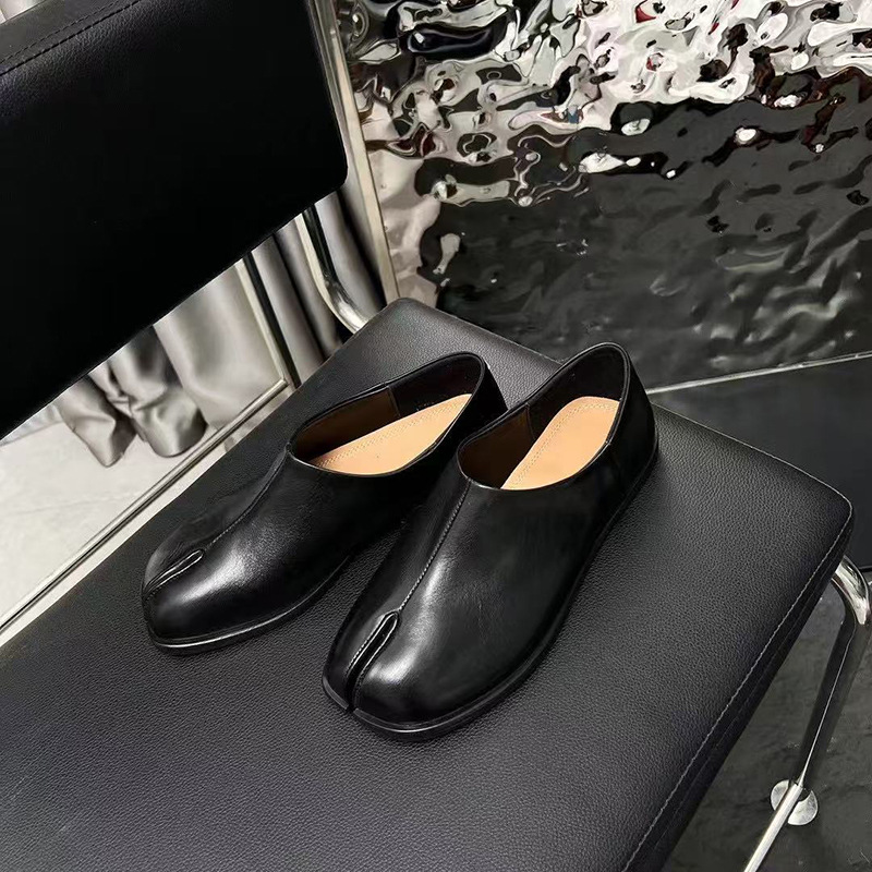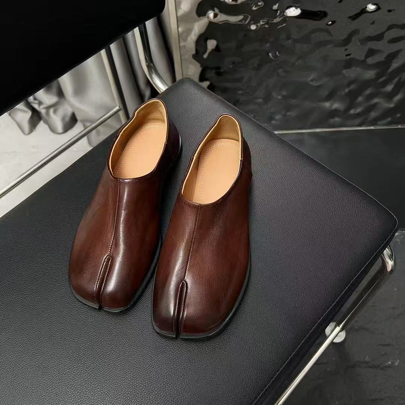 남성용 워싱 말가죽 로퍼, 여성용 레트로 디스트레스드 스플릿 토 슈즈, 플랫 돼지발 슈즈, 슬립온 게으른 작은 가죽 슈즈