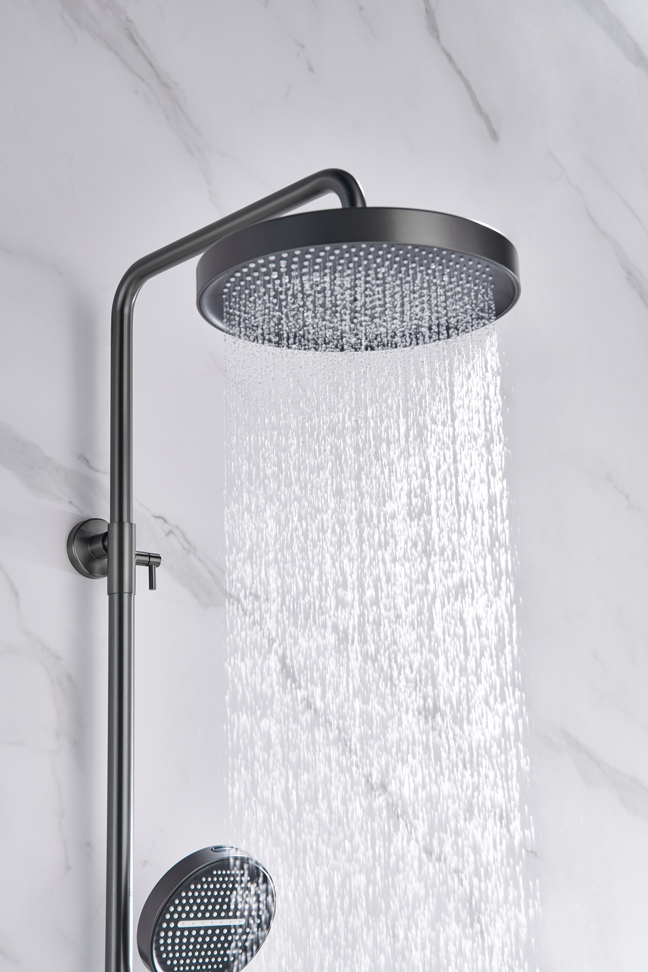 독일 간단한 우유 흰색 샤워 헤드 욕실 욕실 뜨거운 및 차가운 빗물 스프레이 헤드 라운드 샤워 헤드 세트 장치