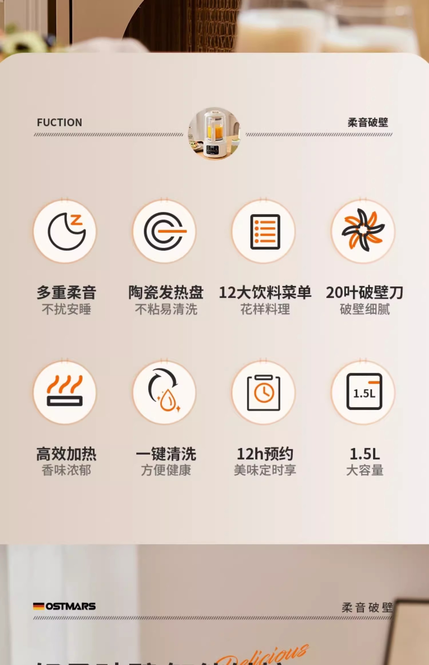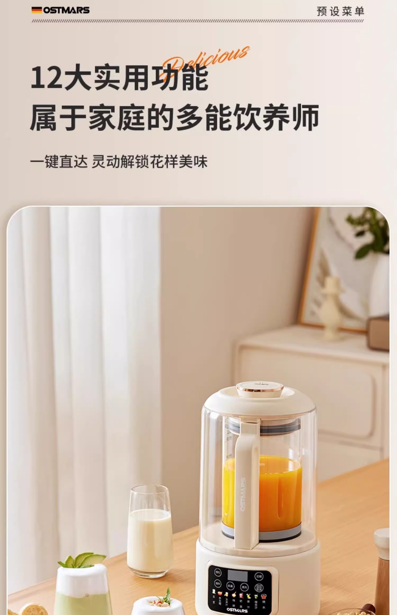 독일 경음 벽 파괴 기계 가정용 완전 자동 2025 새로운 스타일 슬래그 프리, 조리 없음, 필터링 없음 다기능 주스 두유 기계스토어 가기