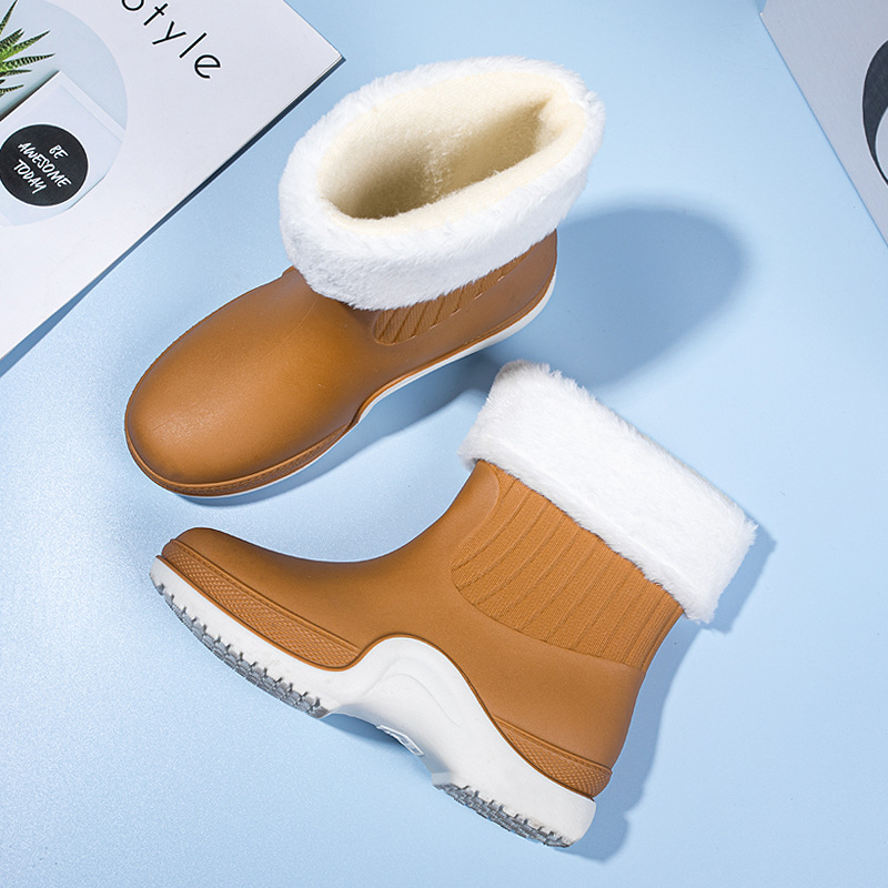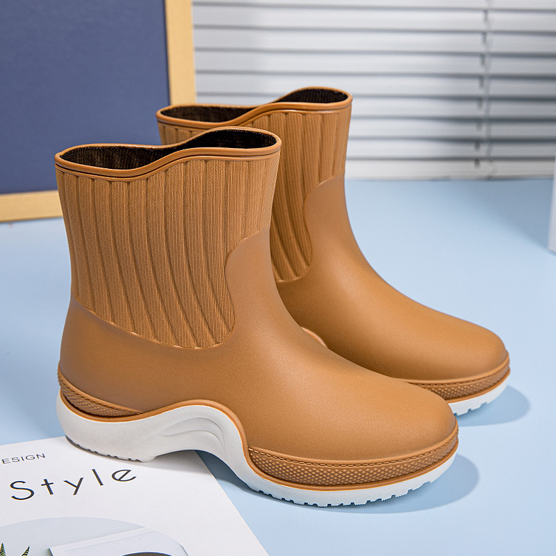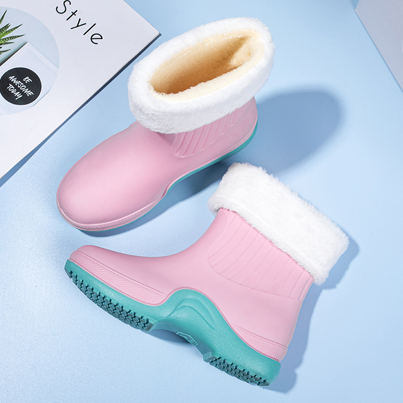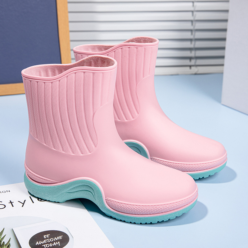 패션 따뜻한 장화 여성용 미드 튜브 오버 슈즈 워터 슈즈 내마모성 작업 장화 방수 미끄럼 방지 식품 구매 외부 고무 신발스토어 가기