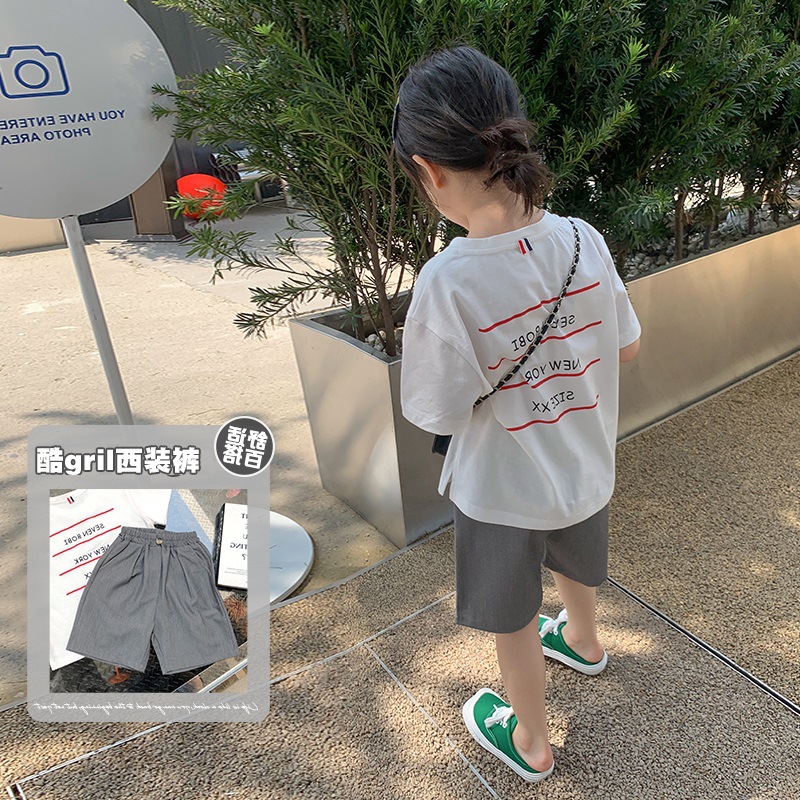 여자 한국식 올매치 세트 반바지 아기 2024 여름 새 어린이 아기 캐주얼 바지 유행