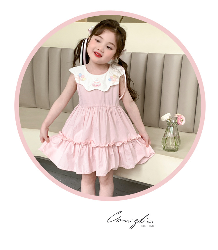 소녀 인형 칼라 케이크 수 원피스 2025 여름 새로운 패션 소녀의 세련된 공주 원피스 어린이 여름 원피스스토어 가기
