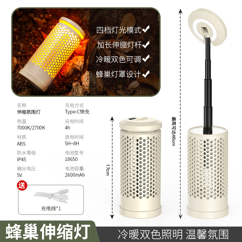 국경 간 새로운 텔레스코픽 분위기 캠핑 램프 야외 조명 캠프 램프 텐트 램프 휴대용 캠핑 램프스토어 가기