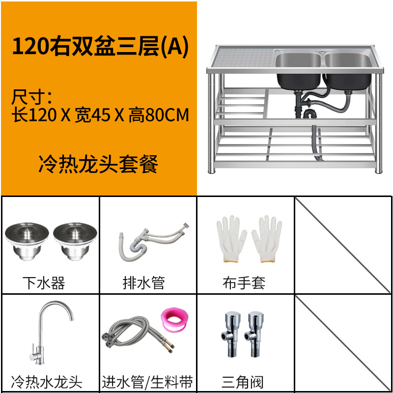 • 120 오른쪽 이중 세면대 3단 + 냉온수 수도꼭지