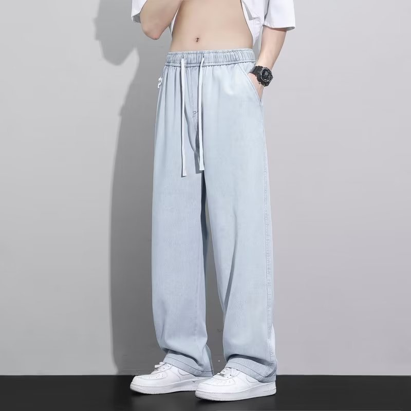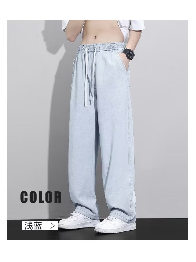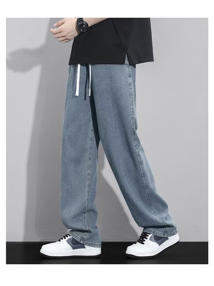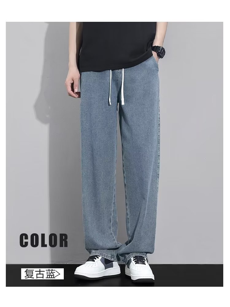 여름 새로운 미국 스타일 레트로 청바지 남성용 와이드 레그 스트레이트 캐주얼 바지 트렌디 브랜드 얇은 느슨한 바지