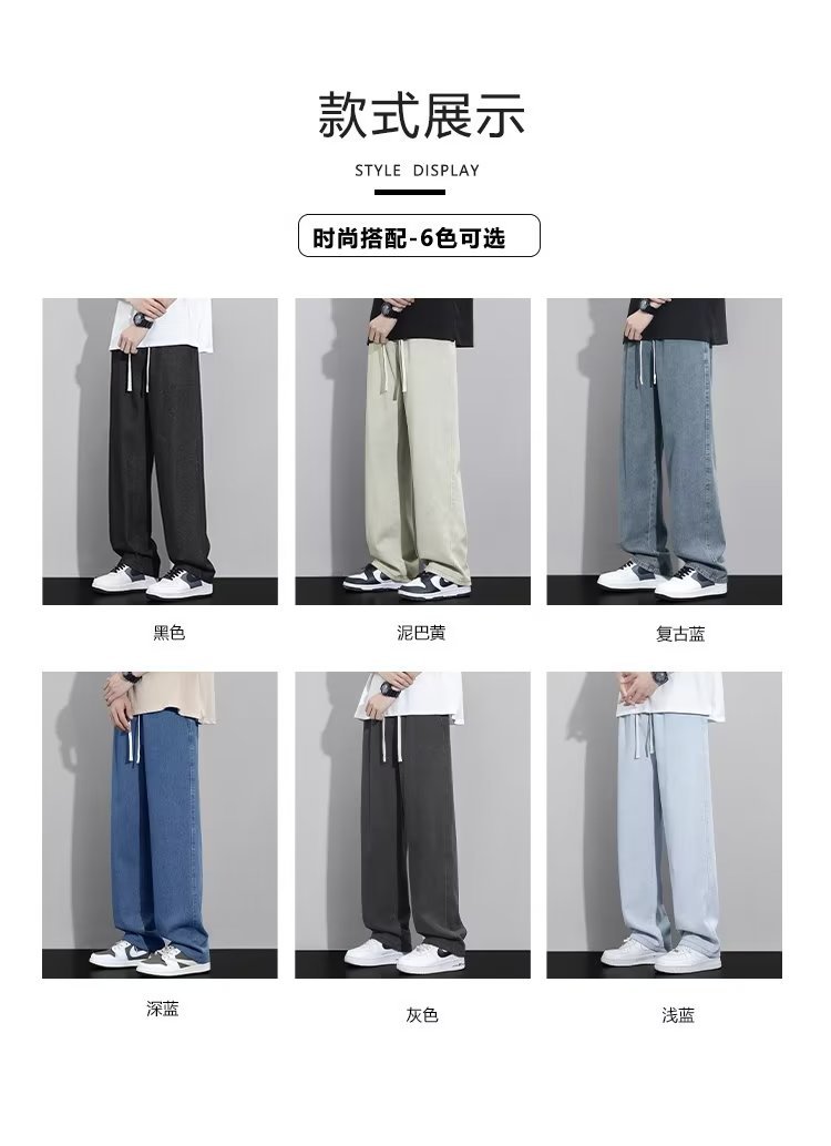 여름 새로운 미국 스타일 레트로 청바지 남성용 와이드 레그 스트레이트 캐주얼 바지 트렌디 브랜드 얇은 느슨한 바지스토어 가기