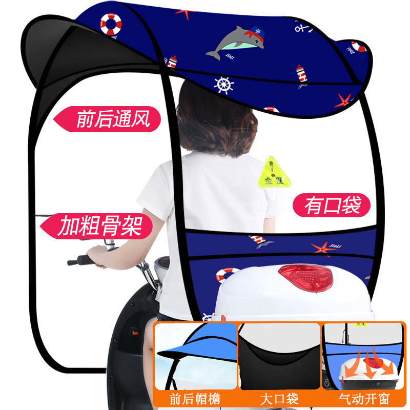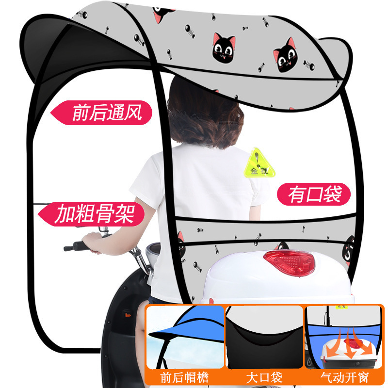 전기 배터리 자동차 차양 새로운 스타일의 탈착식 오토바이 방수 및 자외선 차단제 바람 및 비 커버 파라솔스토어 가기