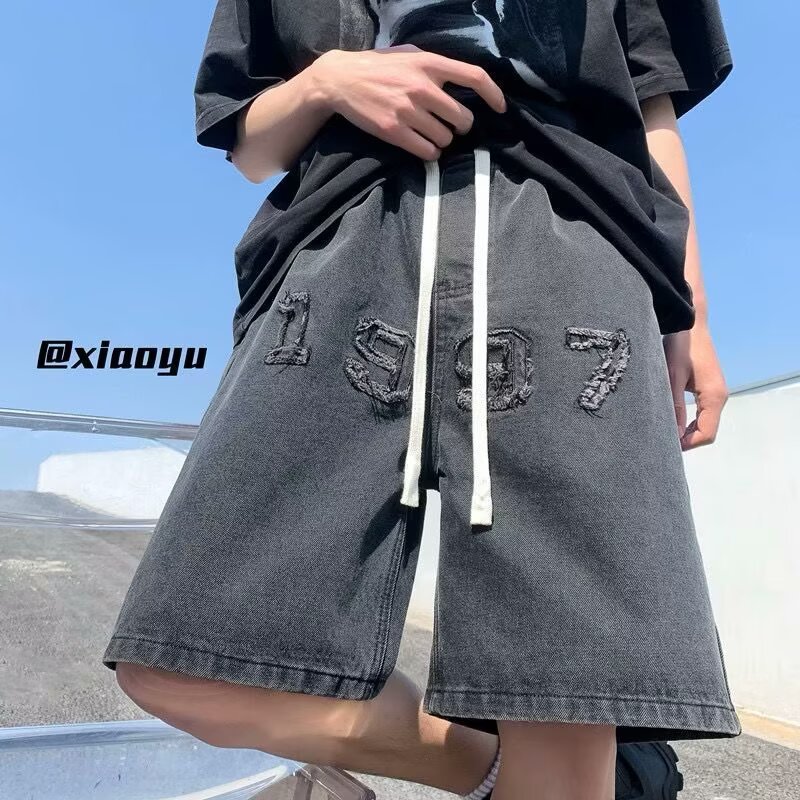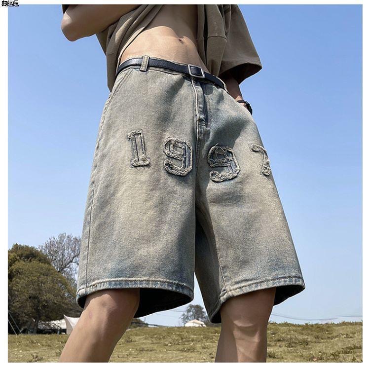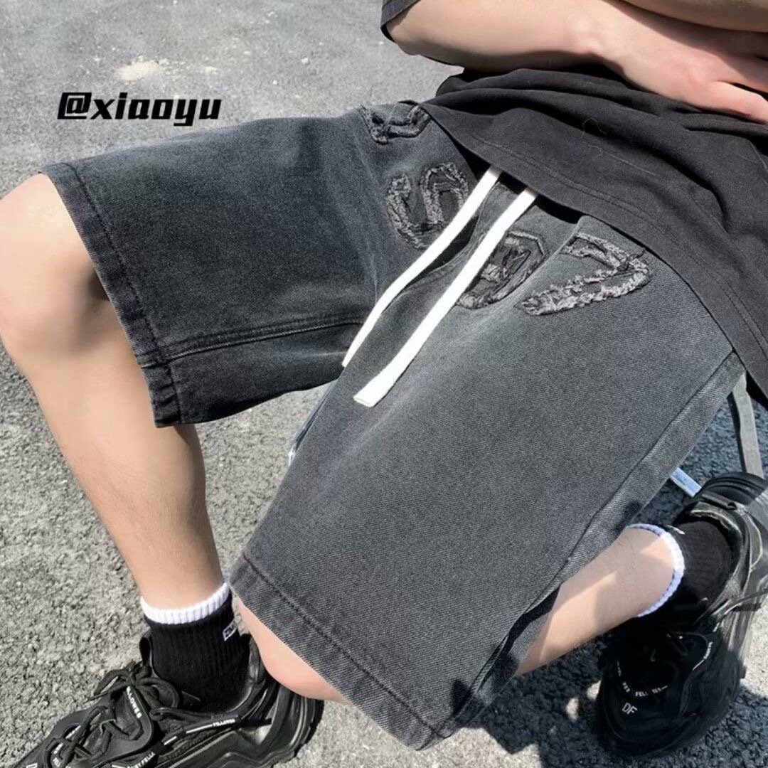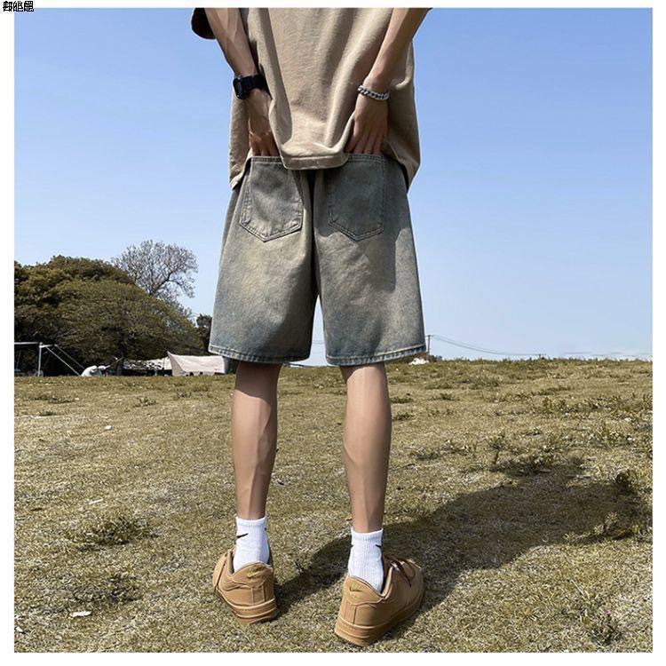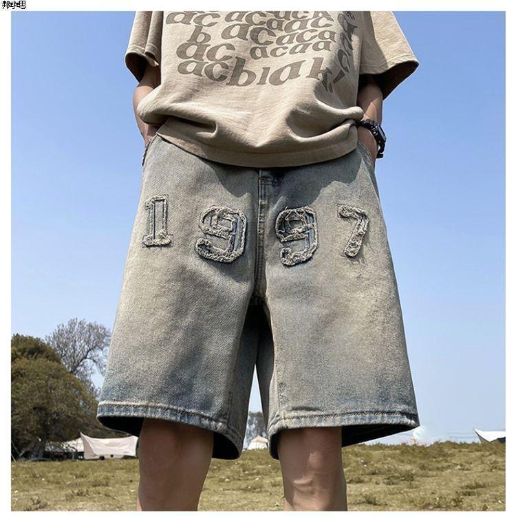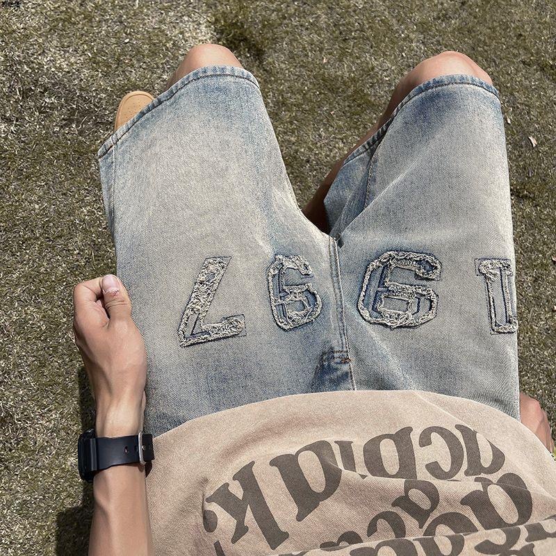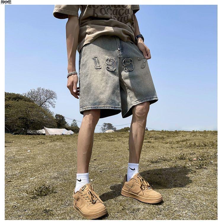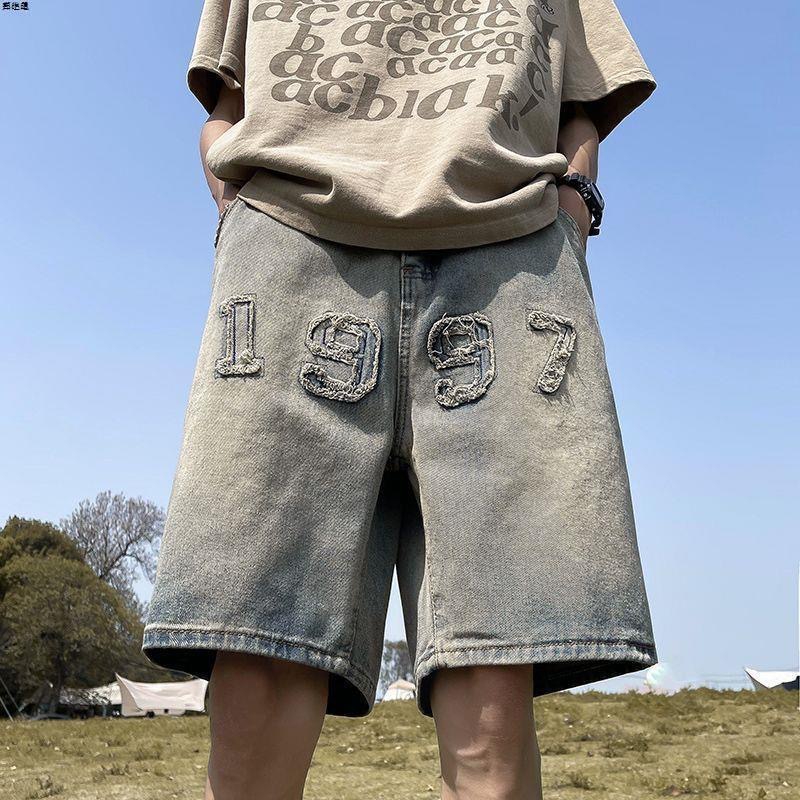 아메리칸 레트로 자수 데님 반바지 남성 여름 노란색 진흙 염색 올드 팬츠 하이 스트리트 패션 브랜드 스트레이트 레그 5부 팬츠 코튼스토어 가기
