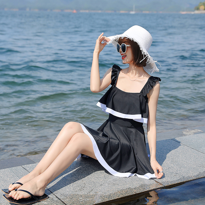 한국 여성의 신선한 스타일 보수적 인 수영복 해변 아름다운 백 슬림 스커트 수영복 고삐 스커트 수영복 도매스토어 가기