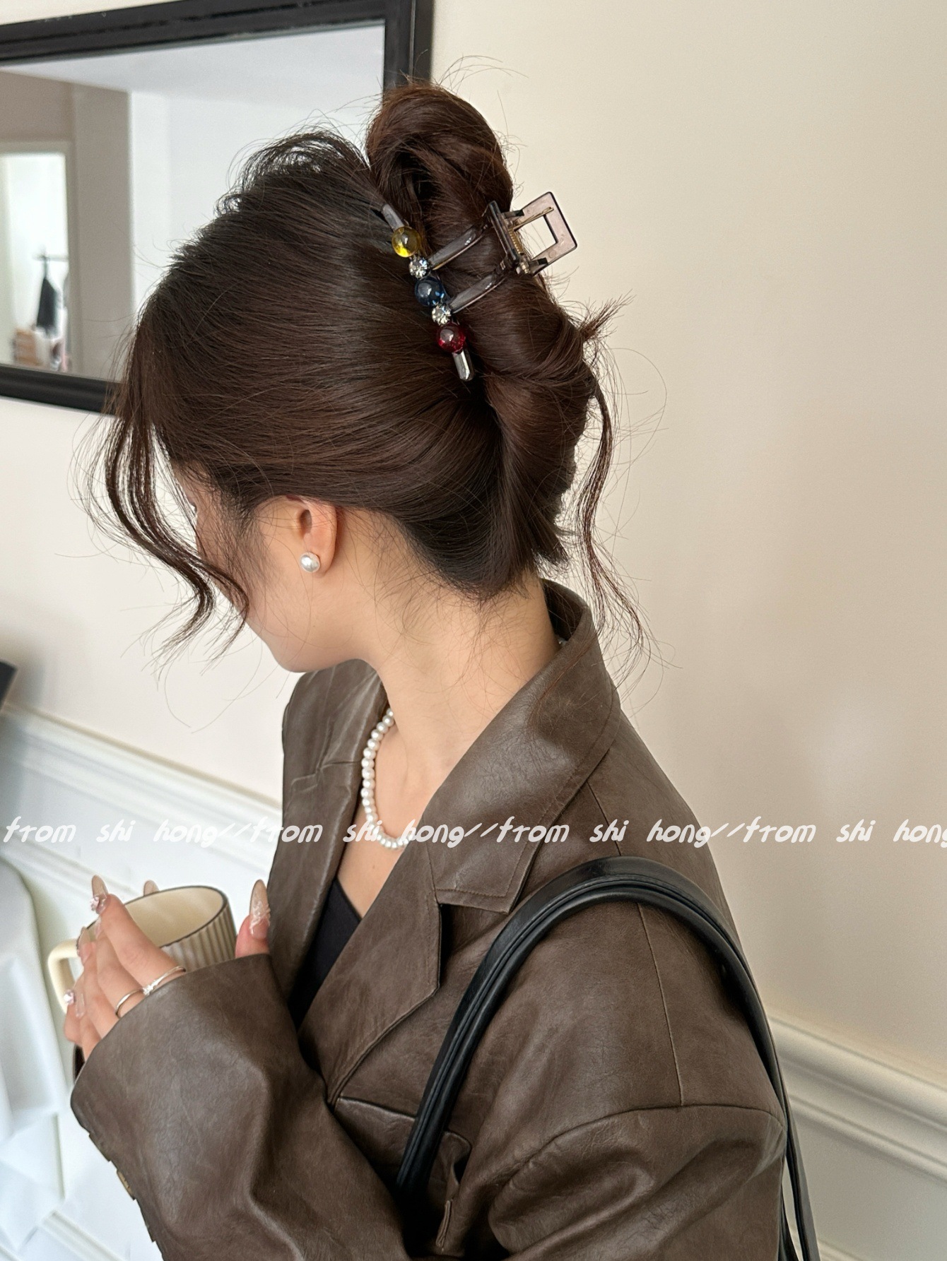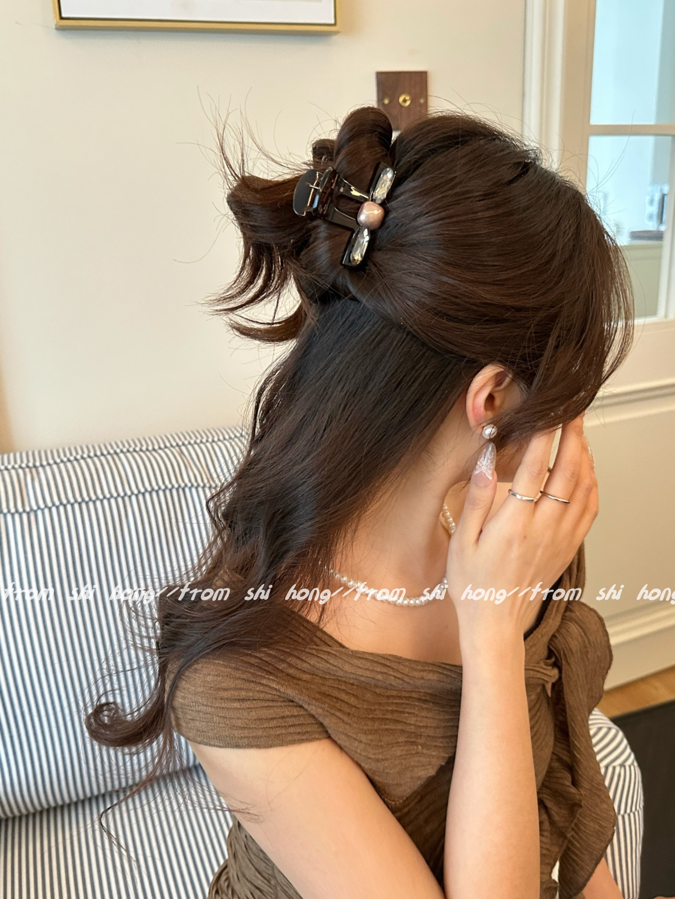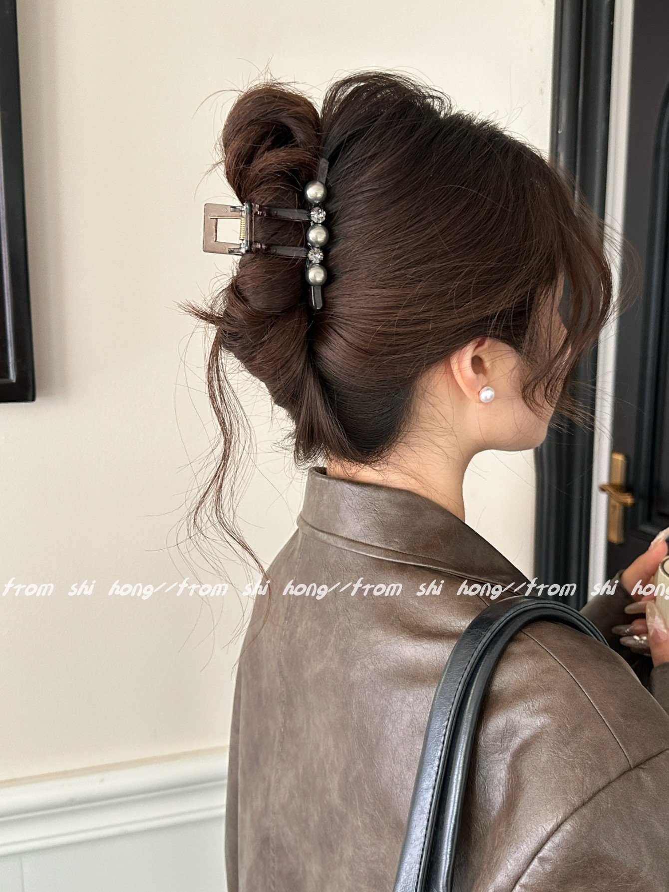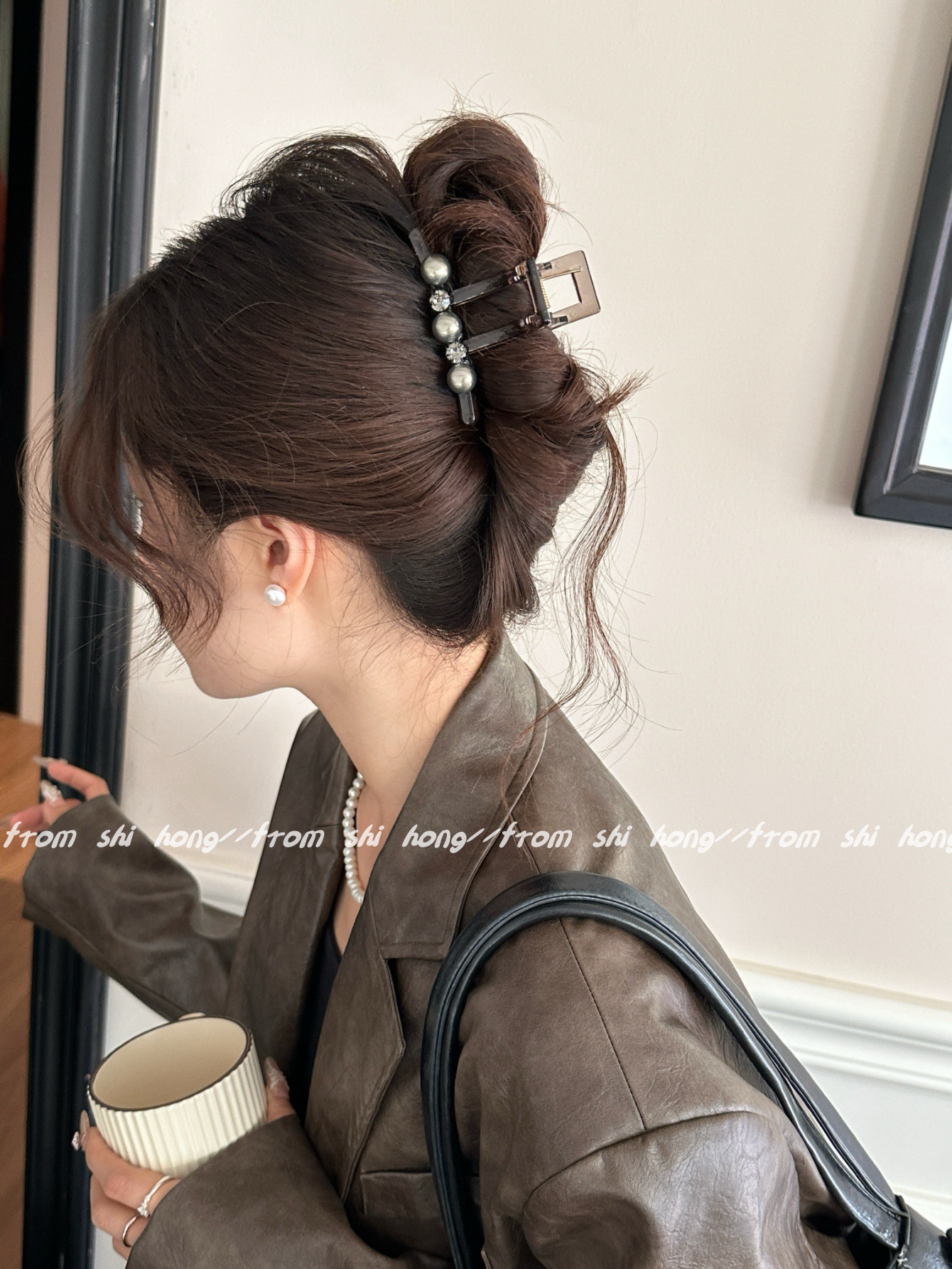 한국 동대문 다크 브라운 단어 밝은 다이아몬드 빅 그랩 클립 여성 머리 머리 상어 클립 인터넷 연예인 올매치 헤어핀스토어 가기