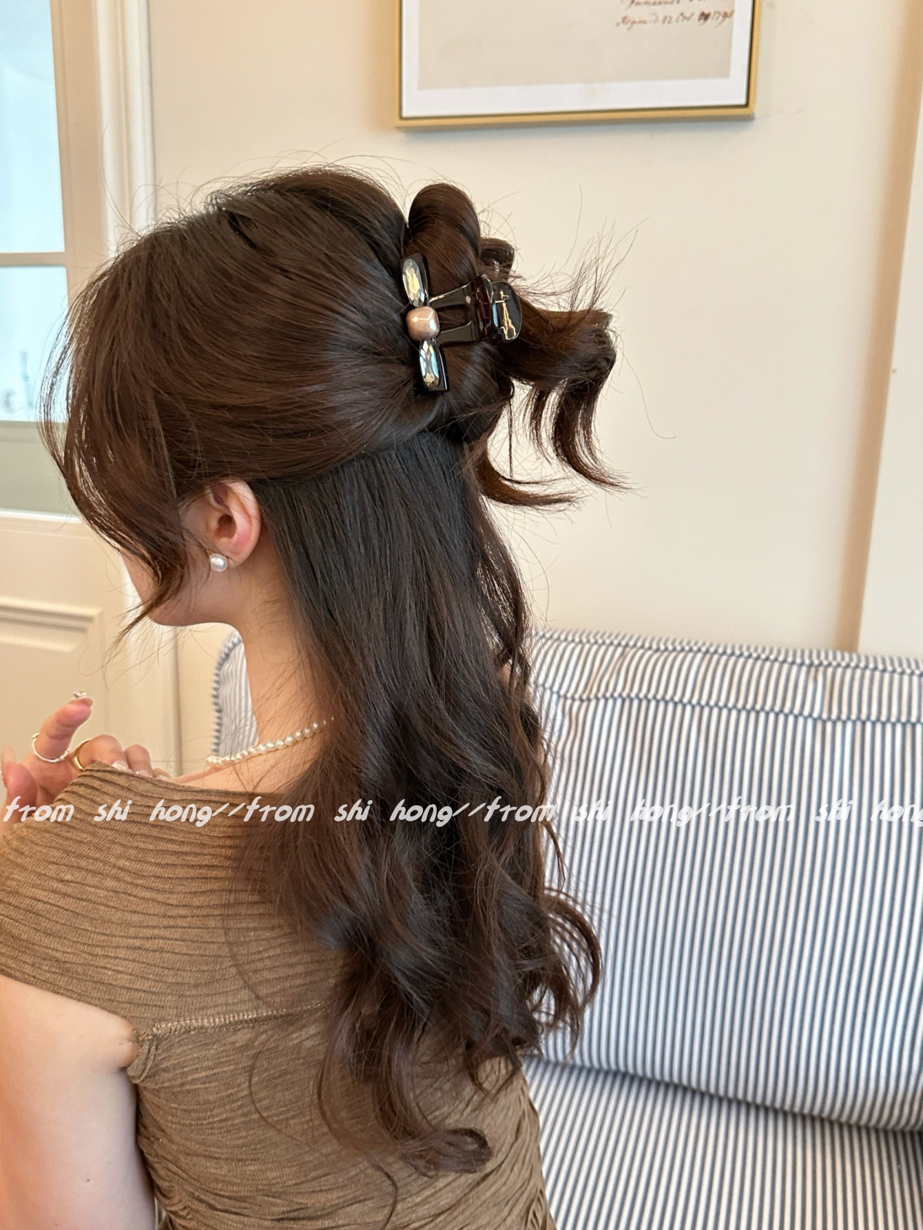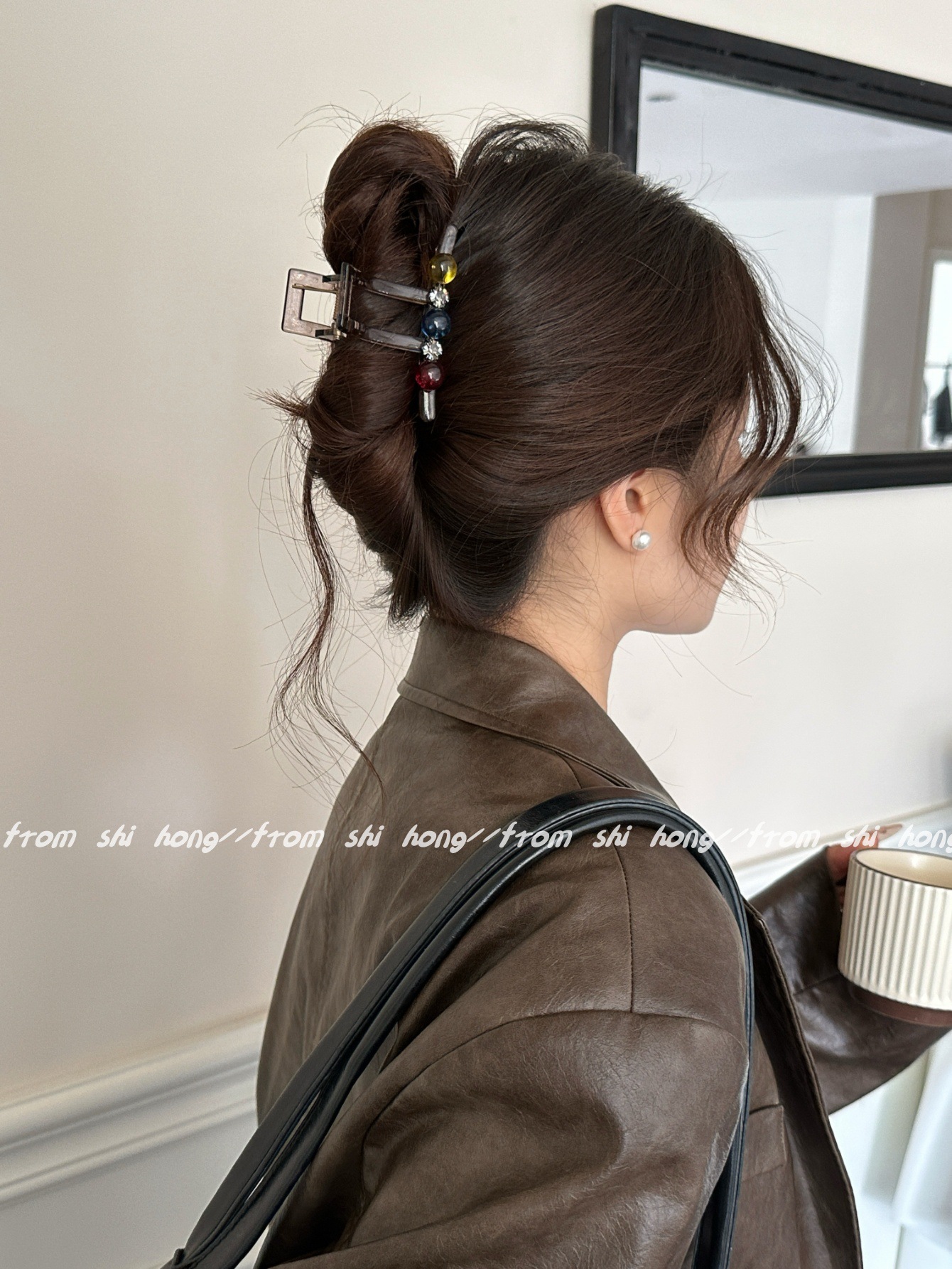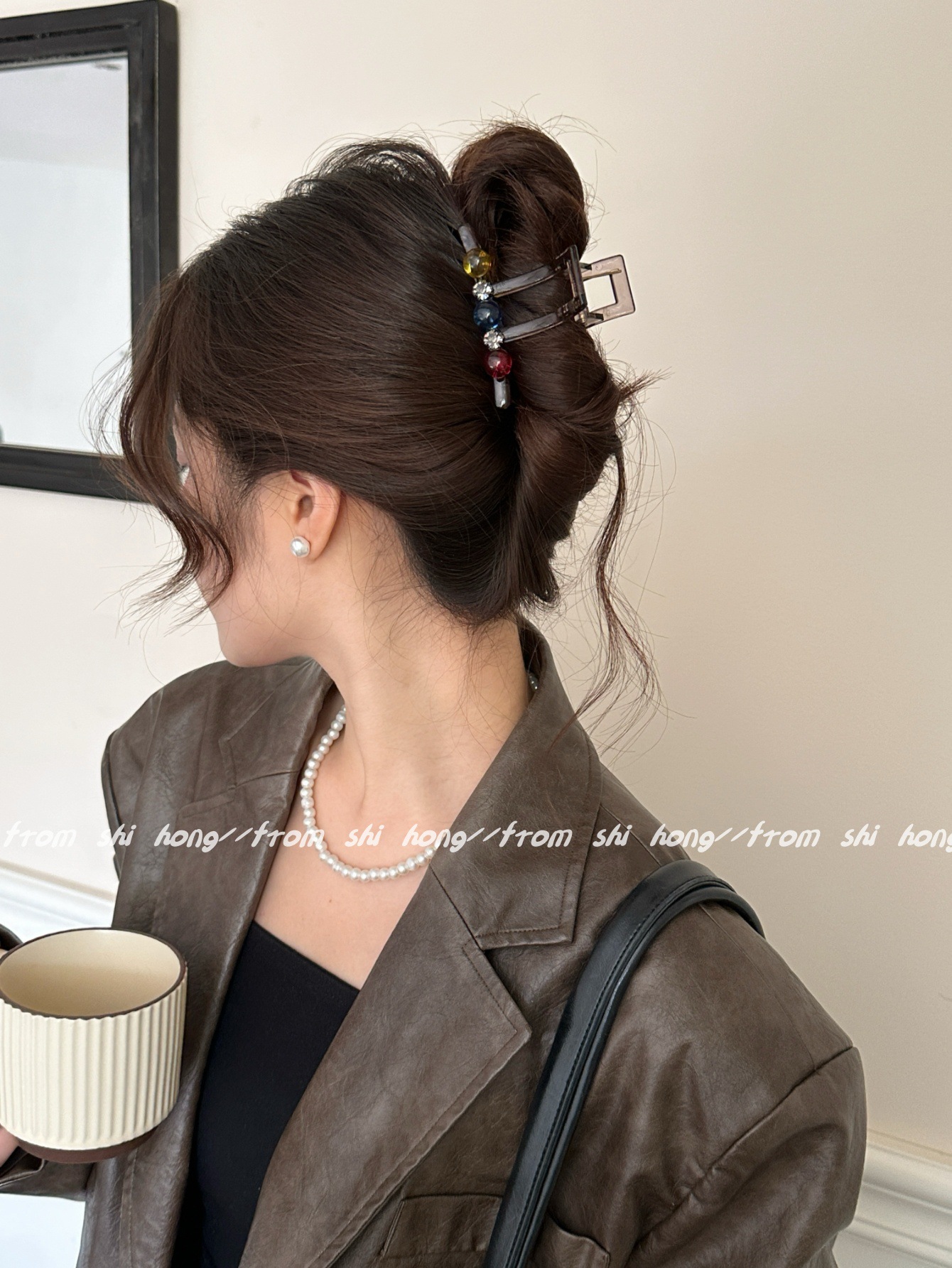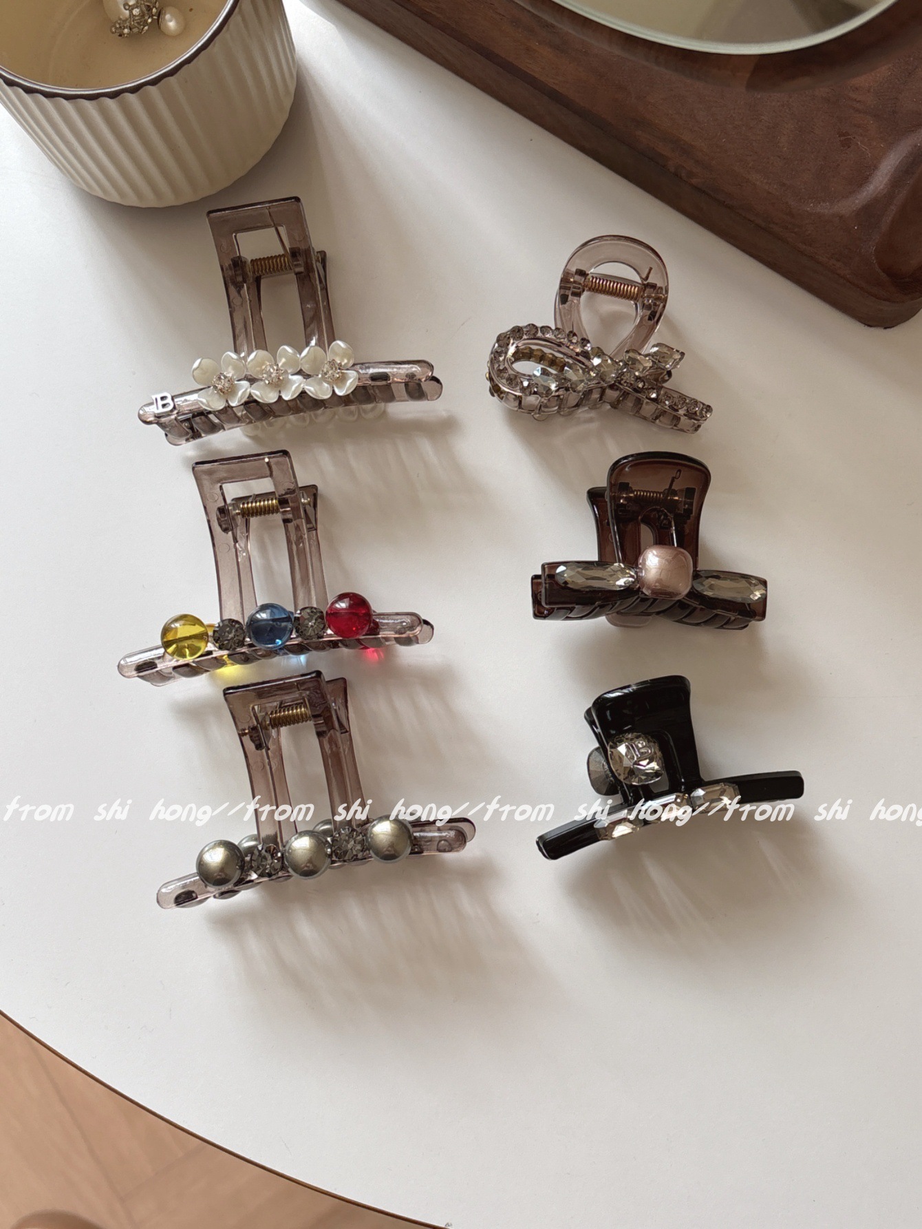 한국 동대문 다크 브라운 단어 밝은 다이아몬드 빅 그랩 클립 여성 머리 머리 상어 클립 인터넷 연예인 올매치 헤어핀스토어 가기
