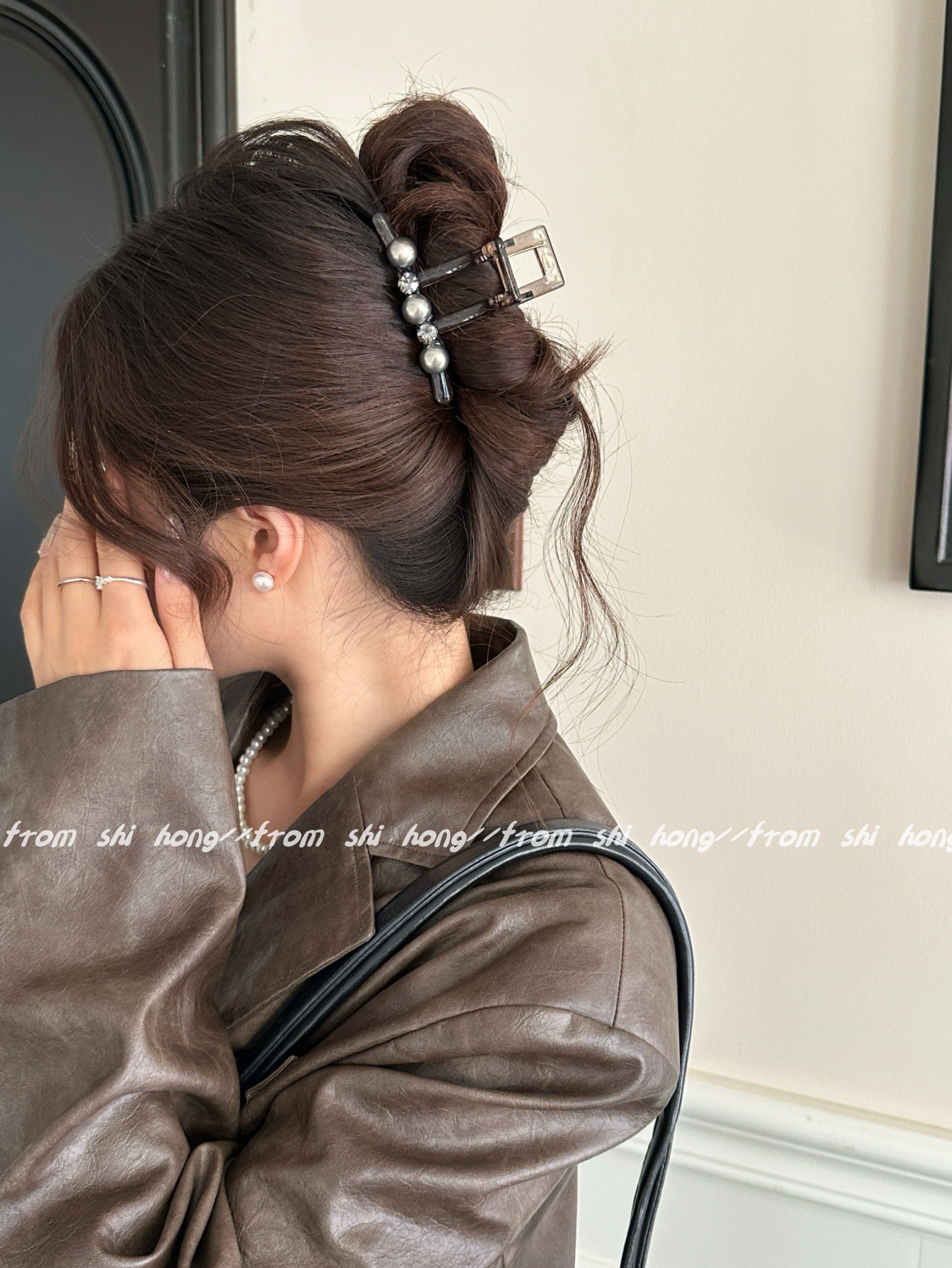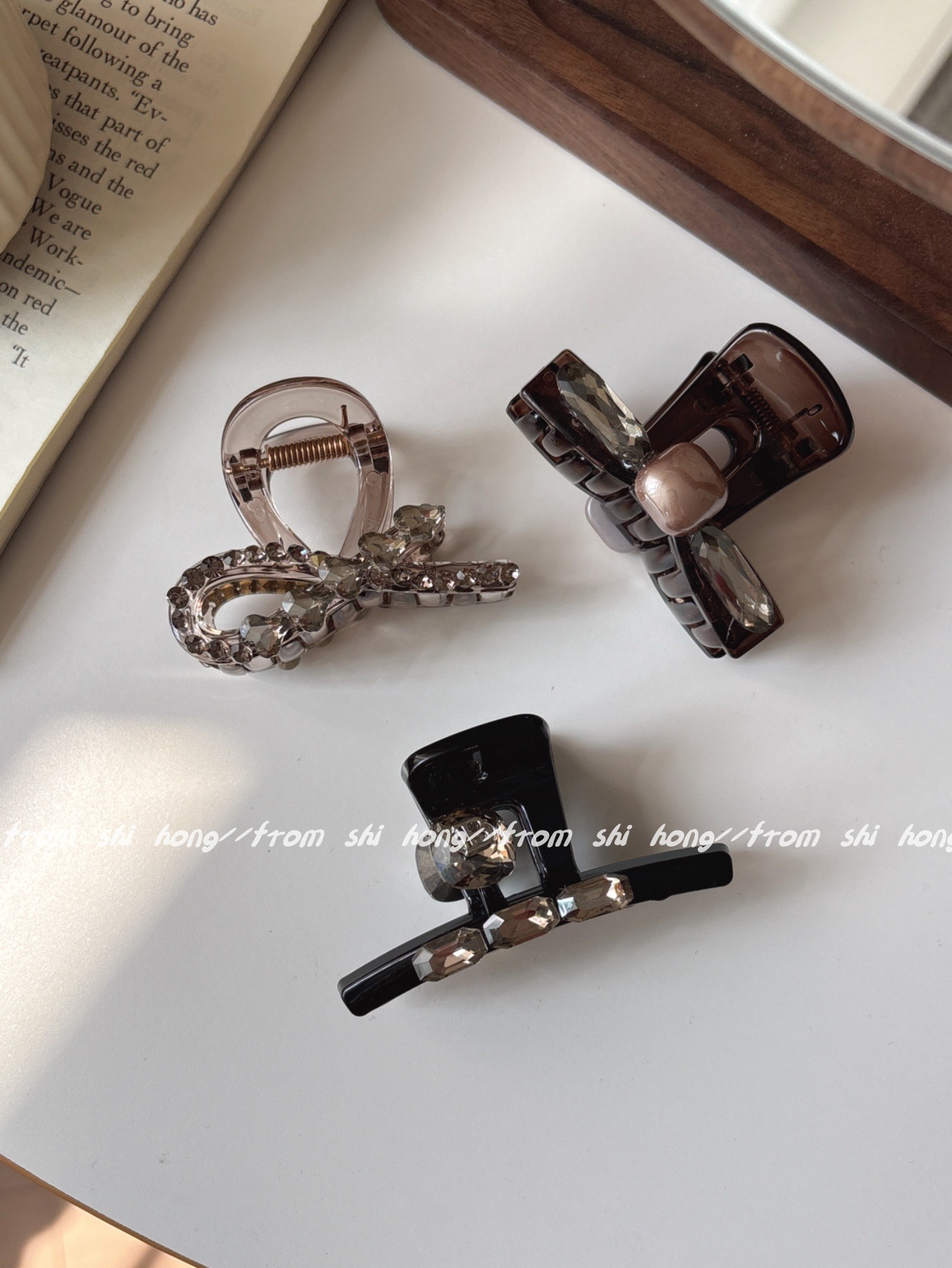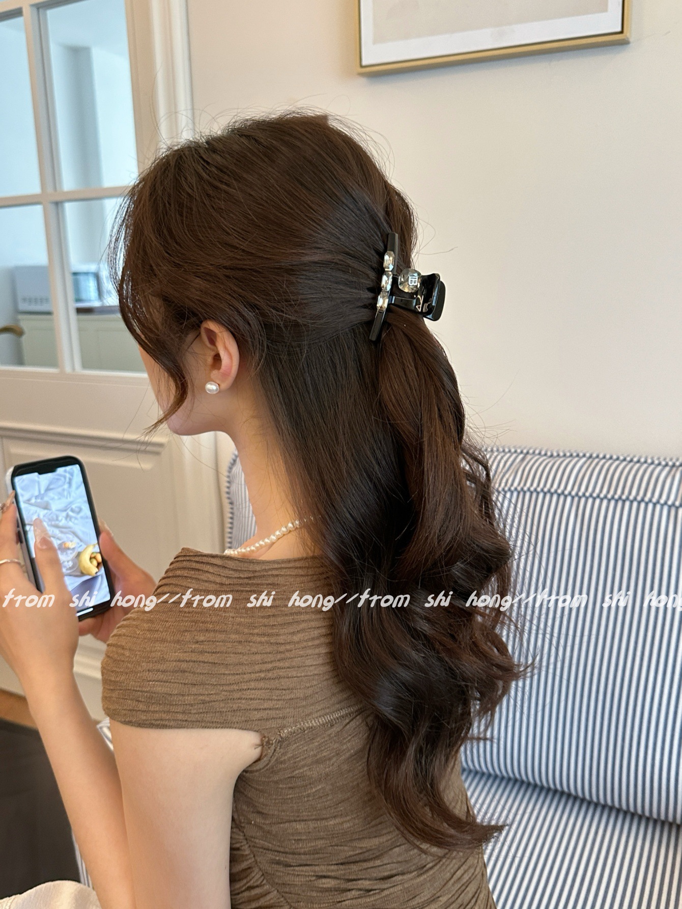 한국 동대문 다크 브라운 단어 밝은 다이아몬드 빅 그랩 클립 여성 머리 머리 상어 클립 인터넷 연예인 올매치 헤어핀