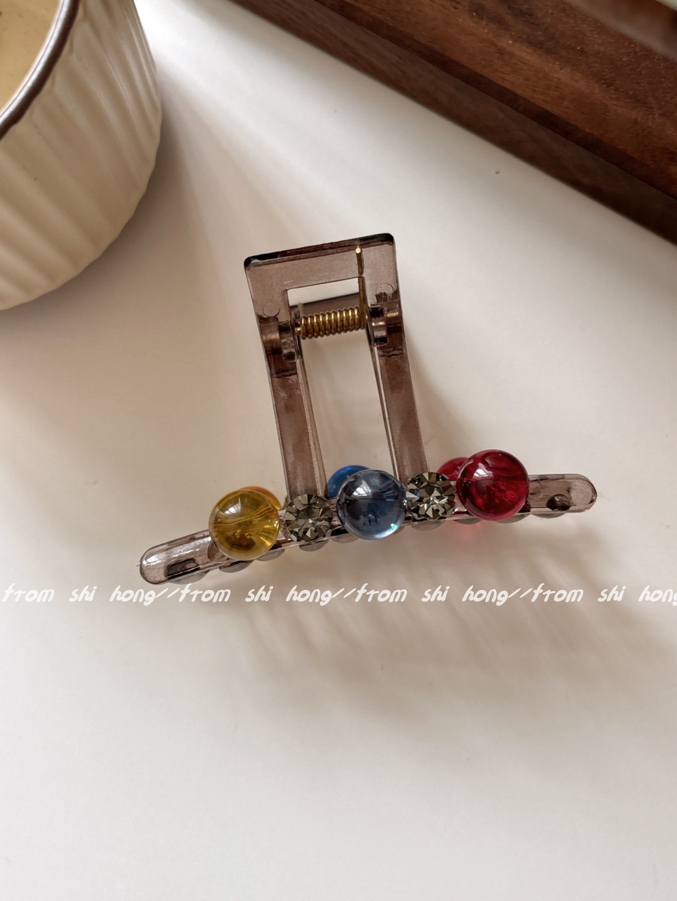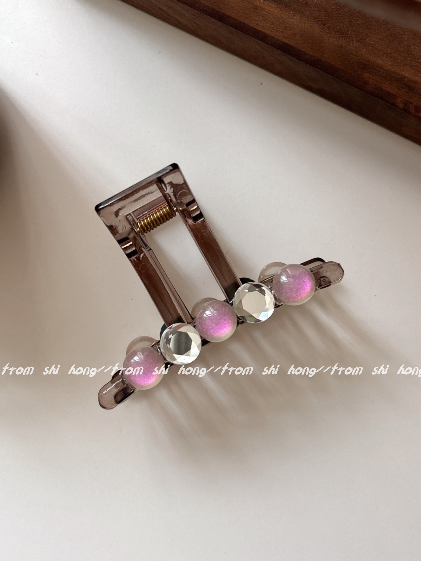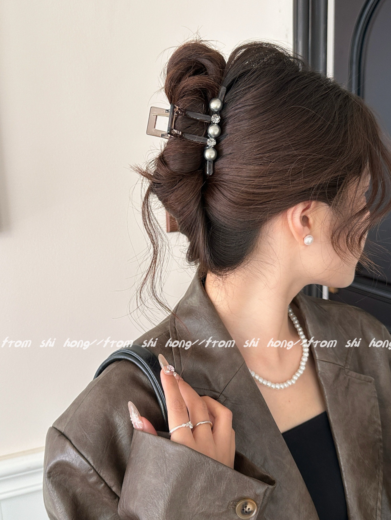 한국 동대문 다크 브라운 단어 밝은 다이아몬드 빅 그랩 클립 여성 머리 머리 상어 클립 인터넷 연예인 올매치 헤어핀
