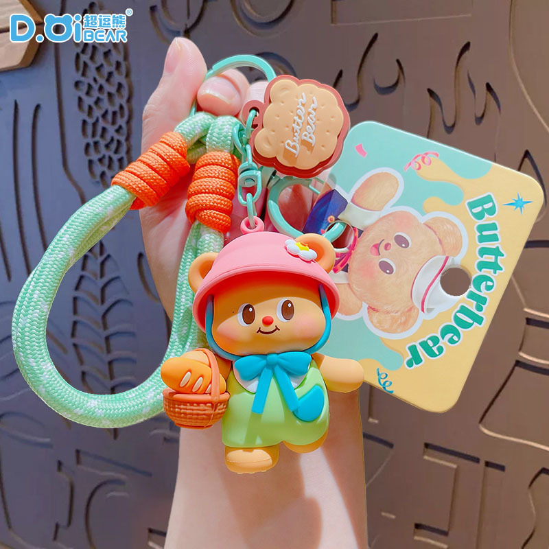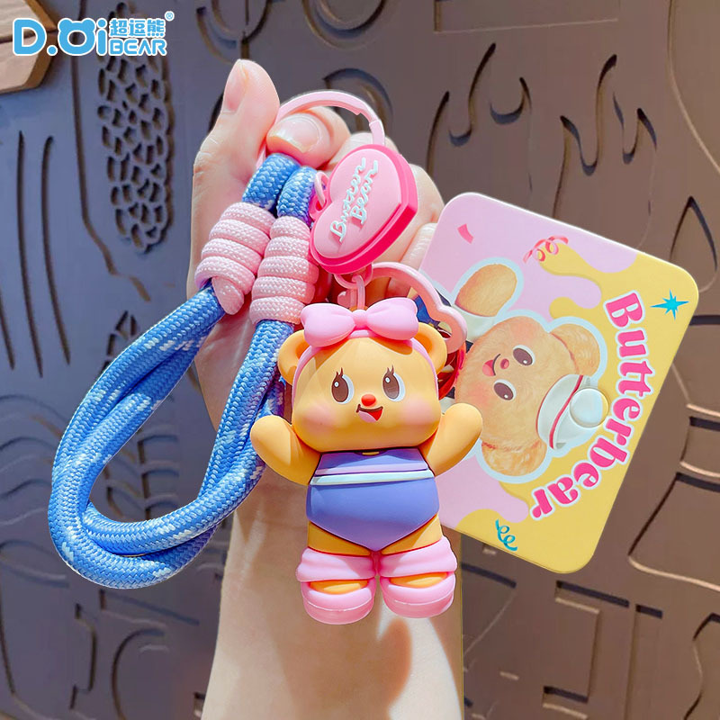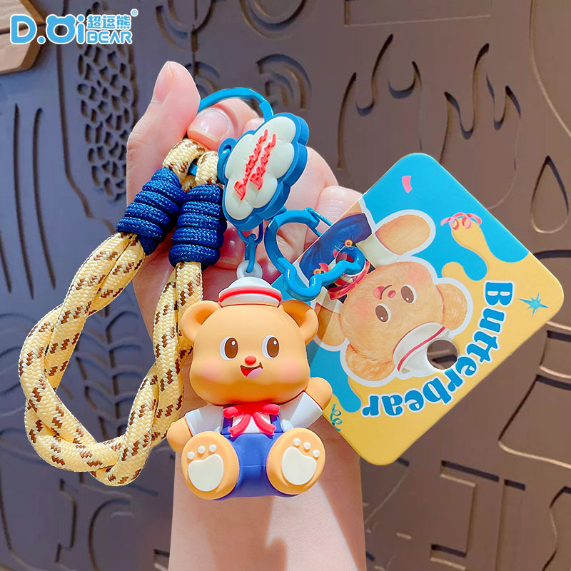 정품 버터 베어 녹음 작은 뿔 키 체인 소녀의 하이 엔드 센스 스쿨백 펜던트 창조적 인 인형 작은 장난감