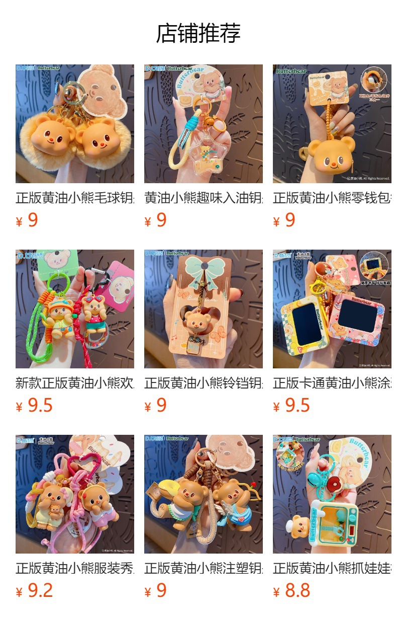 정품 버터 베어 녹음 작은 뿔 키 체인 소녀의 하이 엔드 센스 스쿨백 펜던트 창조적 인 인형 작은 장난감스토어 가기