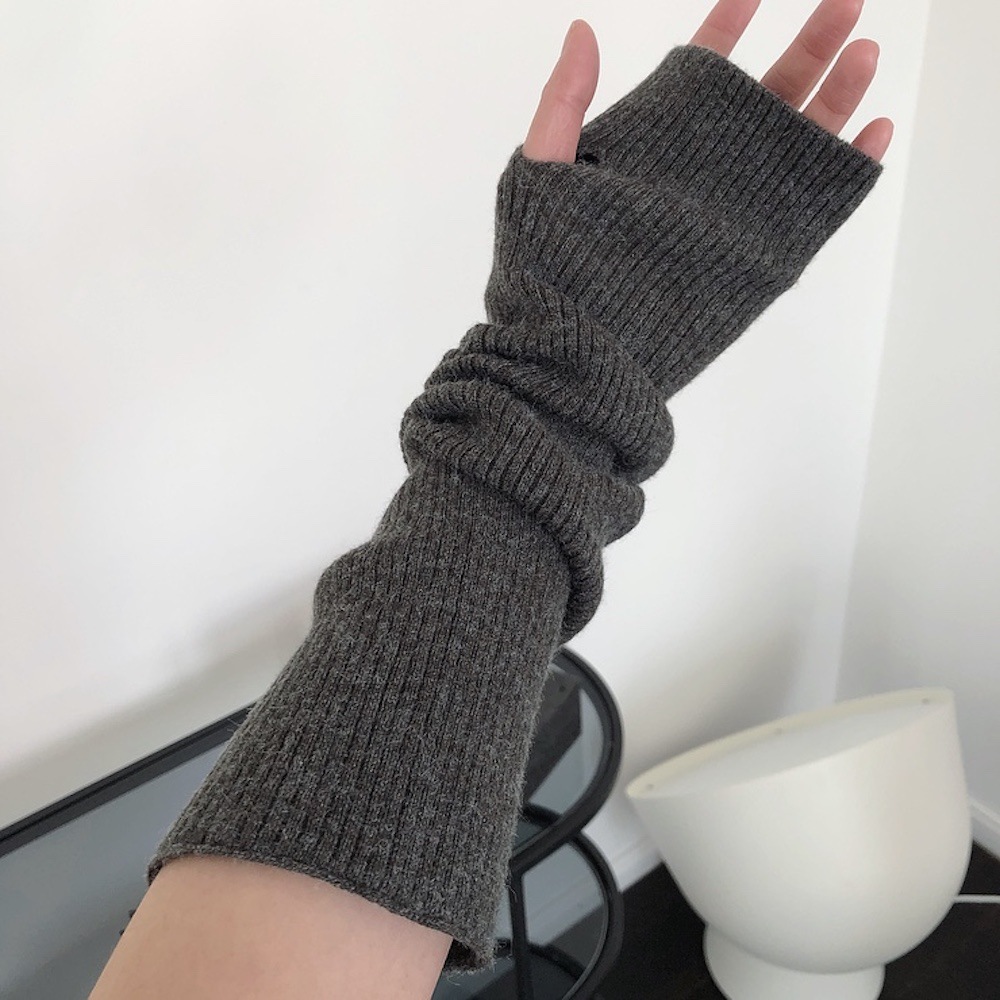 이른 가을 새로운 한국어 버전 유행 수직 피트 스트레치 니트 소매 부드러운 왁스 패션 따뜻한 손가락 장갑 여성용 가짜 소매