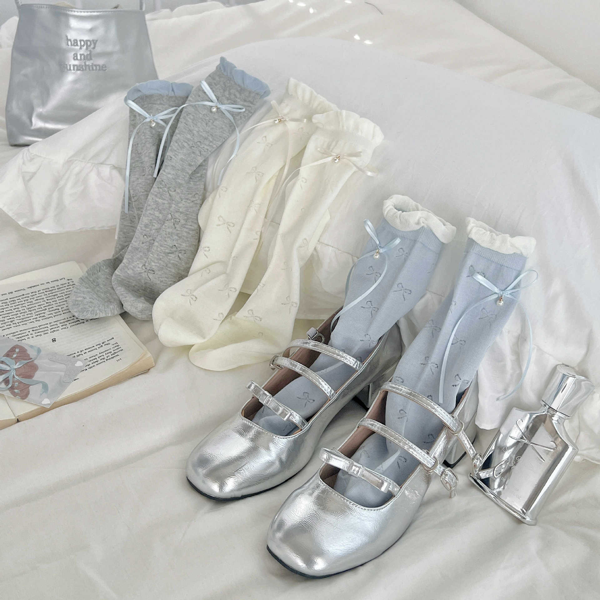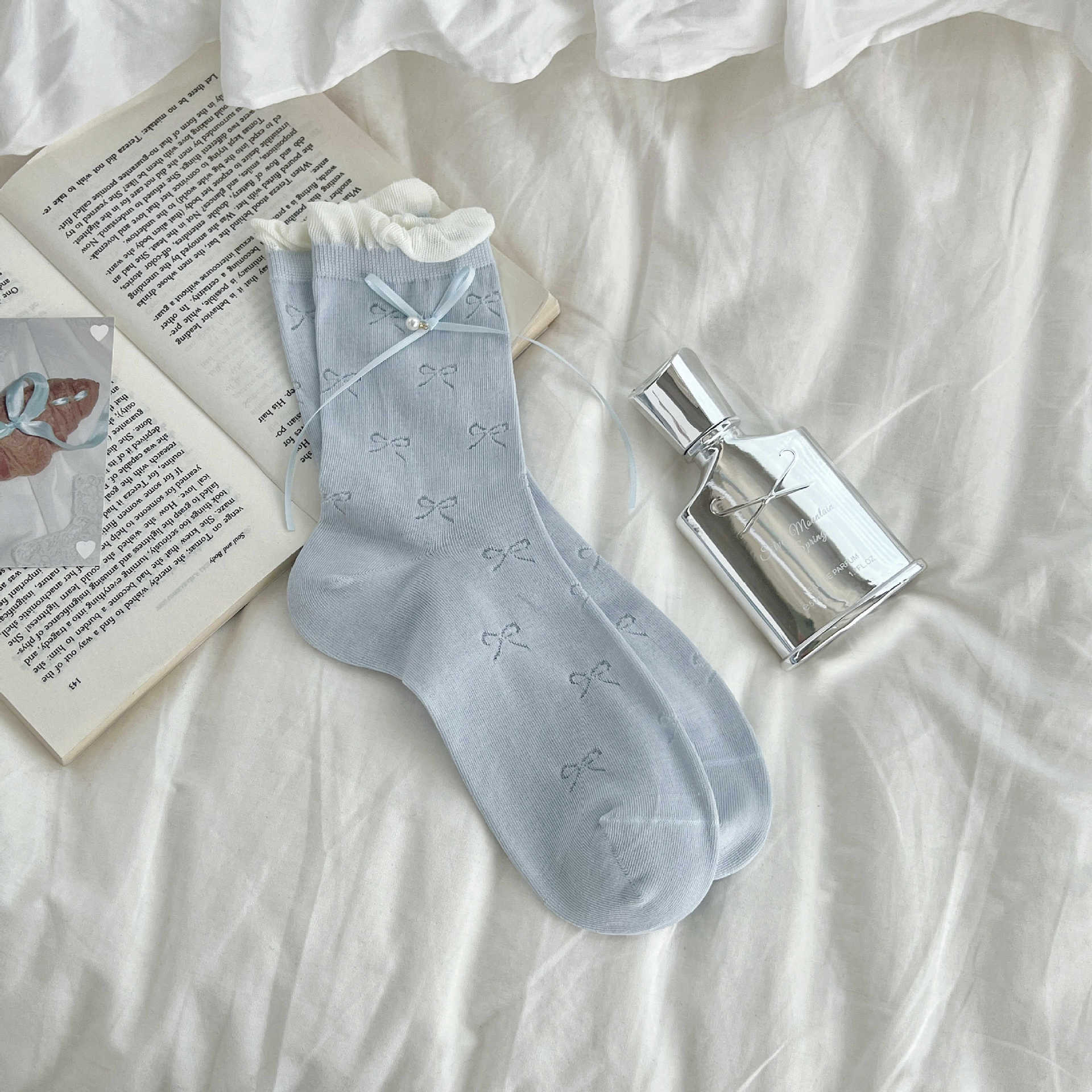 발레 스타일 얇은 리본 소녀의 활인 메쉬 순수한 욕망 양말 통기성 코튼 양말 여성의 뼈없는 안티 필링