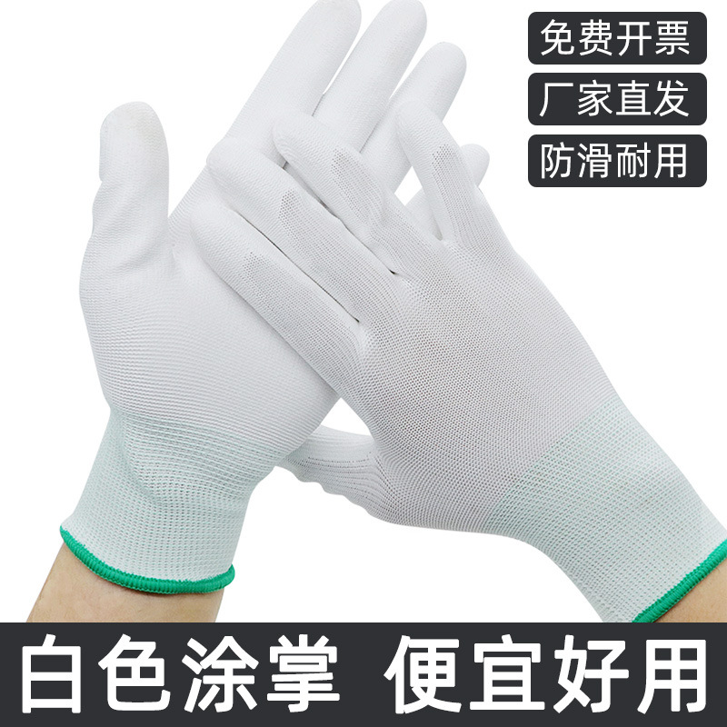 큰 브랜드 두꺼운 PU508 손바닥과 손가락이 코팅된 장갑, 작업용 접착제가 포함된 남성과 여성을 위한 나일론 노동 보호 흰색 미끄럼 방지 장갑스토어 가기