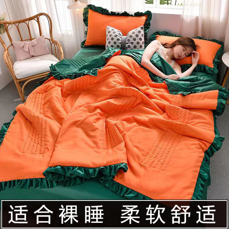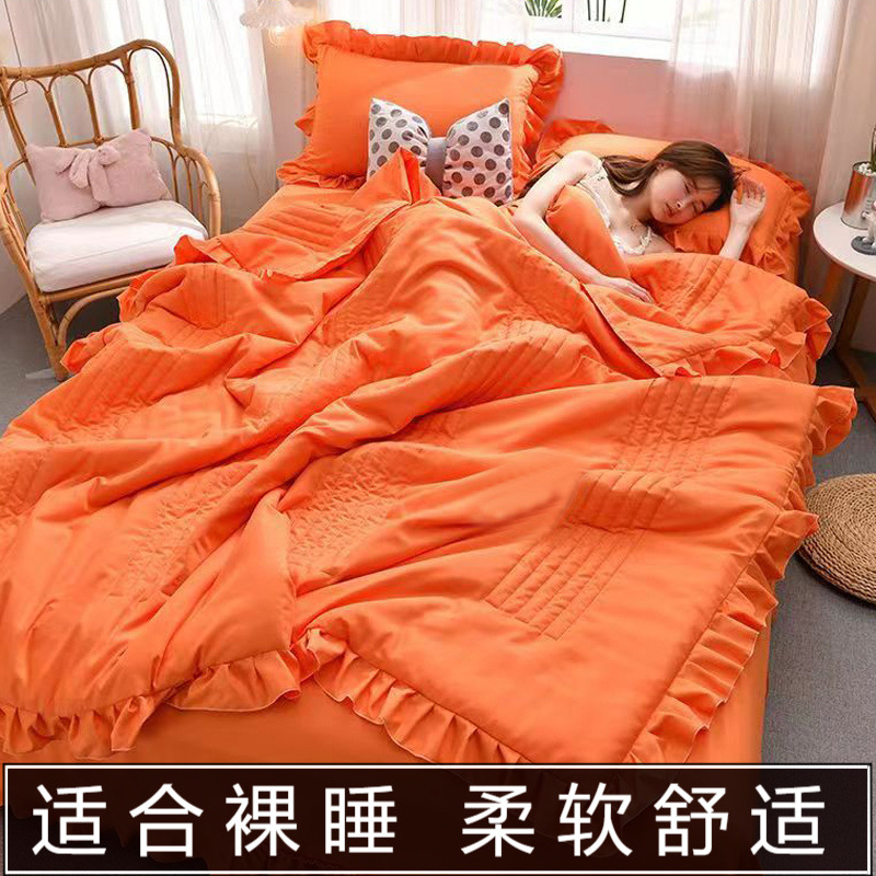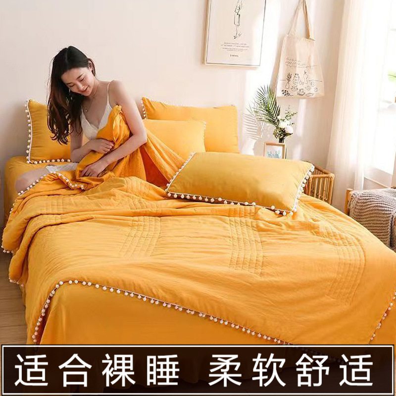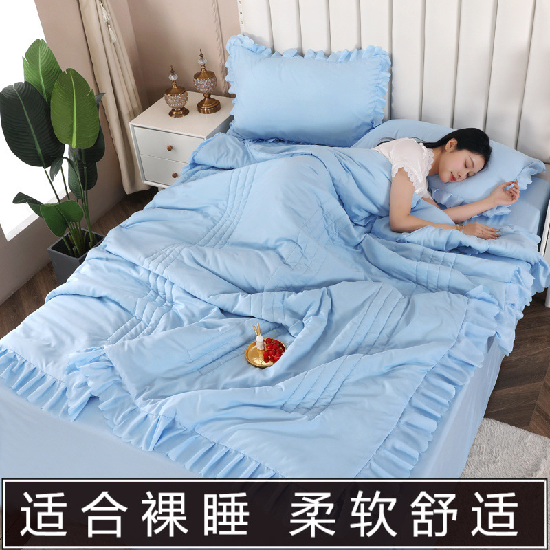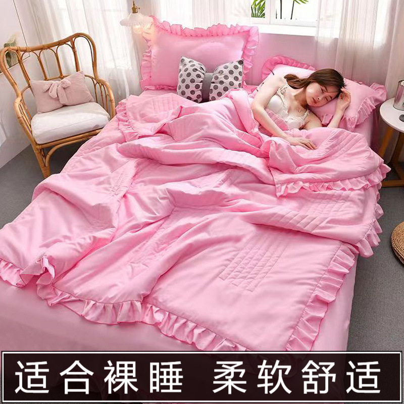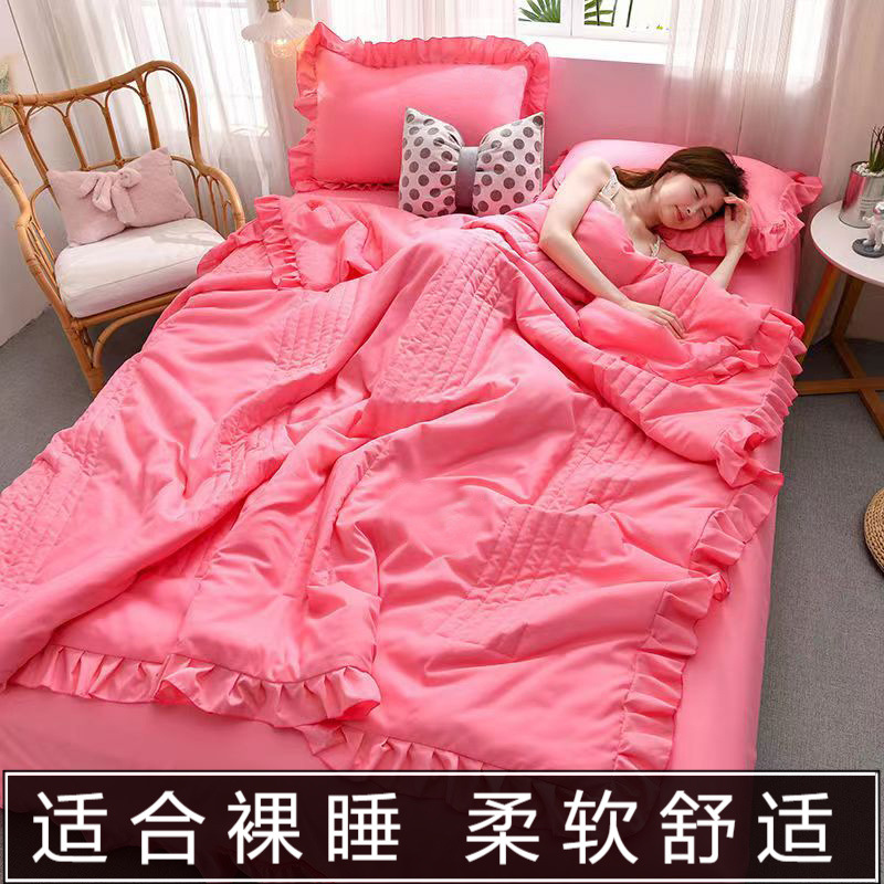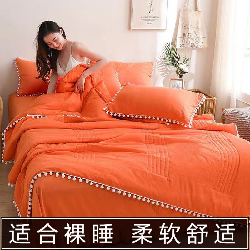 솔리드 컬러 여름 이불 여름 이불 한국 스타일 에어컨 이불 3 종 세트 4 종 세트 얇은 이불 기계 빨 수있는 싱글 더블