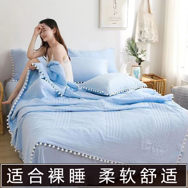 솔리드 컬러 여름 이불 여름 이불 한국 스타일 에어컨 이불 3 종 세트 4 종 세트 얇은 이불 기계 빨 수있는 싱글 더블스토어 가기