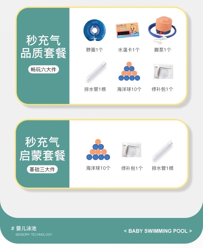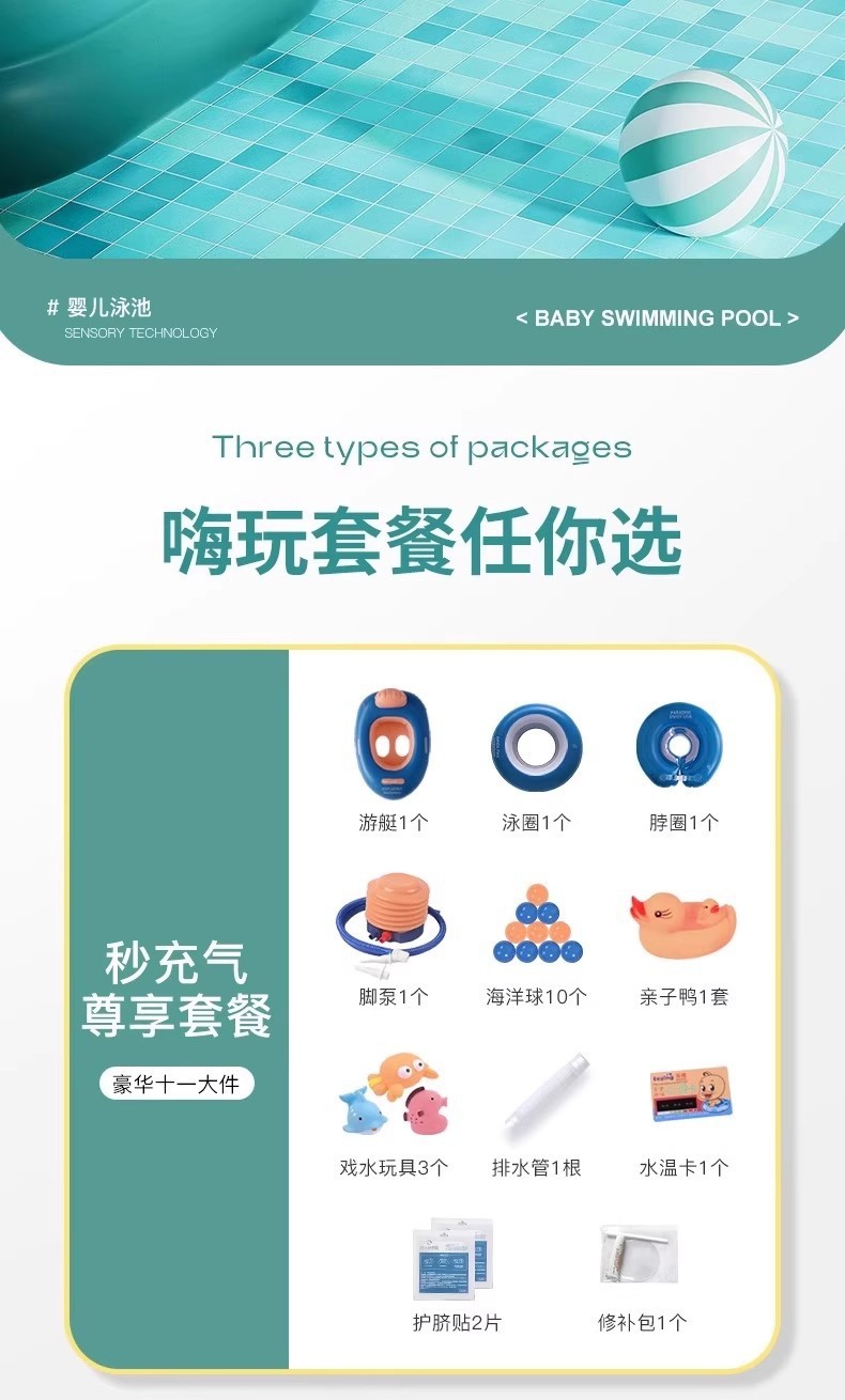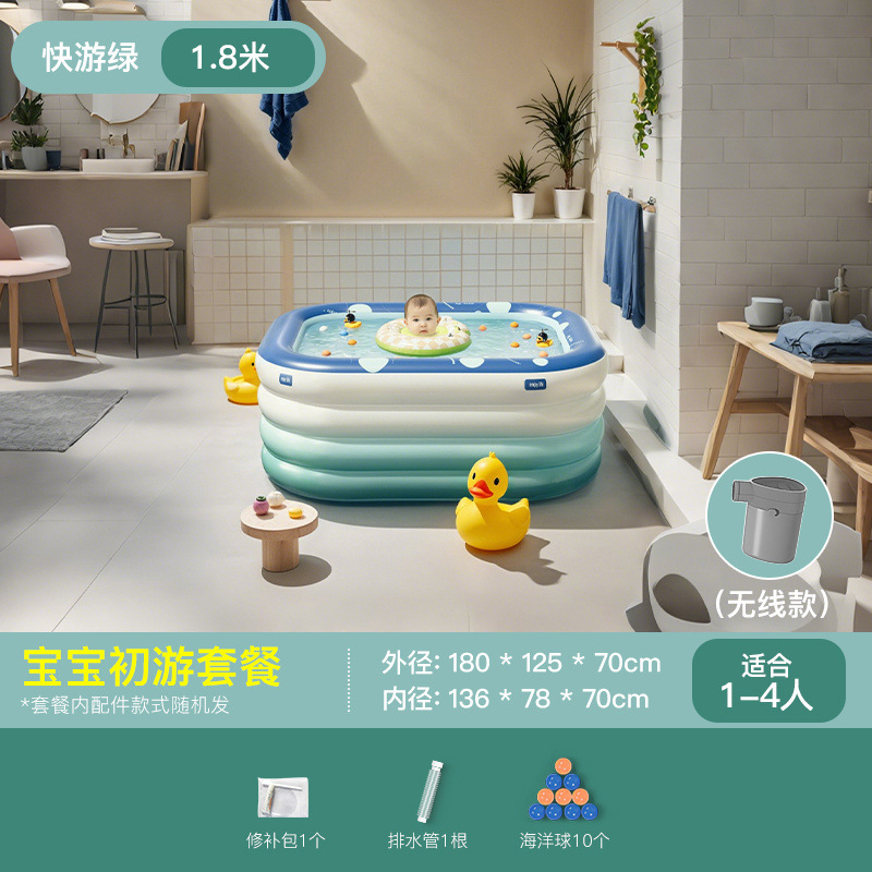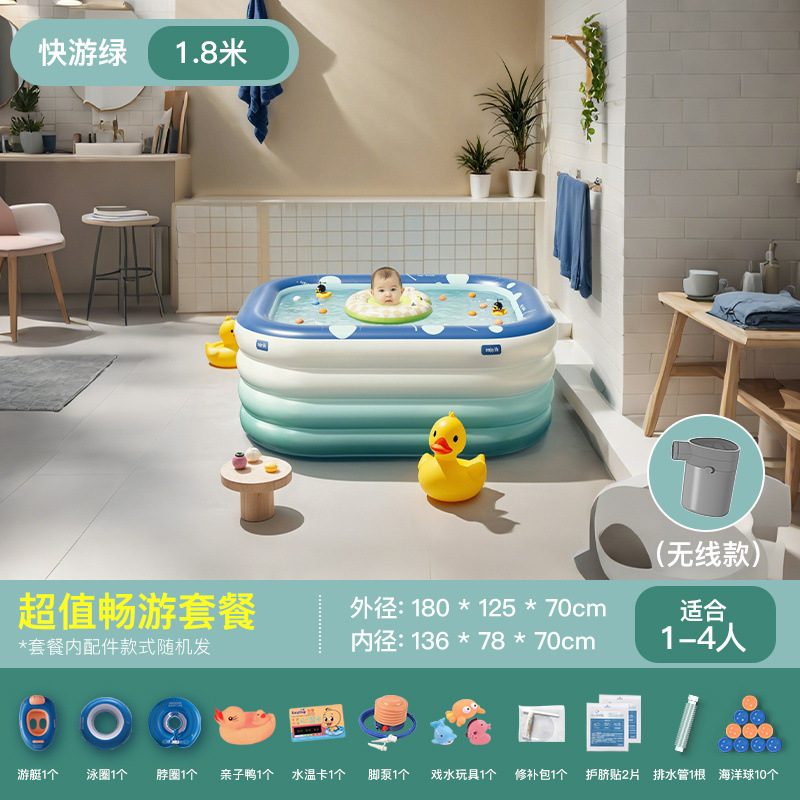 • 베이비 수영 세트-[콰이유 그린] 2.2m층 + 무선 고속 충전