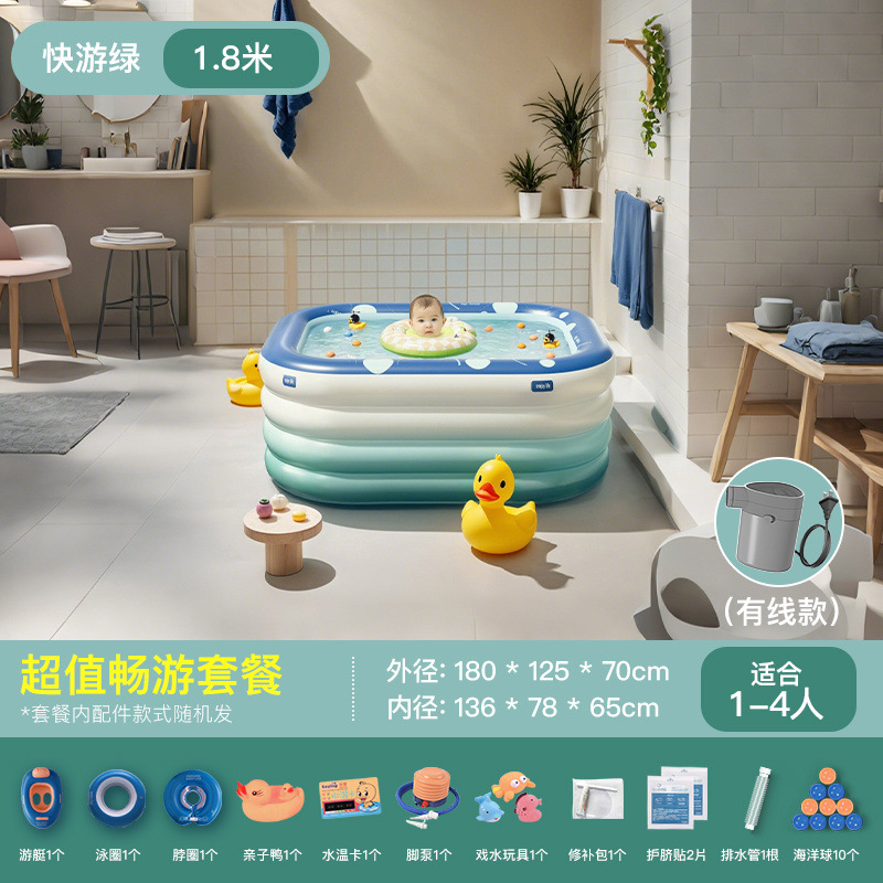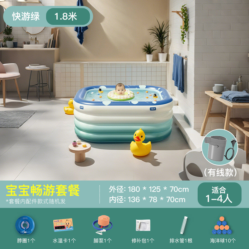 • 베이비 수영 세트-[콰이유 그린] 2.2m층 + 유선 고속 충전