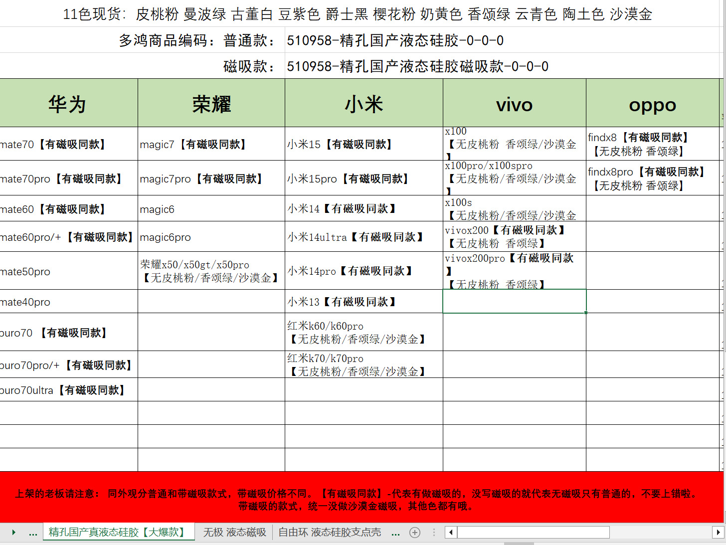 【自有工厂+实体档口】源头直供高端液态硅胶手机壳,真材实料零妥协!PC+进口液态硅胶双材质,通过SGS环保认证,婴儿级触感防摔抗黄变色,支持企业/个人供货,日均产能5000+单,线下实体档口位于深圳华强北,量大单私聊客服!